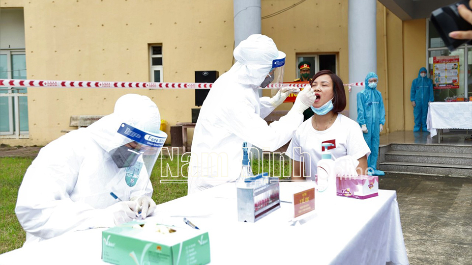 gày 5-6, tại Công ty TNHH Youngone, Khu công nghiệp Hòa Xá (thành phố Nam Định), Bộ CHQS tỉnh phối hợp với các ngành chức năng tổ chức diễn tập phòng, chống dịch COVID-19. Dự và chỉ đạo cuộc diễn tập có các đồng chí: Phạm Gia Túc, Ủy viên BCH Trung ương Đảng, Bí thư Tỉnh ủy; Lê Quốc Chỉnh, Phó Bí thư Thường trực Tỉnh ủy, Chủ tịch HĐND tỉnh; Phạm Đình Nghị, Phó Bí thư Tỉnh ủy, Chủ tịch UBND tỉnh, Trưởng Ban chỉ đạo phòng chống dịch COVID-19 của tỉnh; Trần Lê Đoài, TUV, Phó Chủ tịch UBND tỉnh, Phó Trưởng Ban chỉ đạo phòng chống dịch COVID-19 của tỉnh; Thiếu tướng Đỗ Phương Thuấn, Phó Tư lệnh Quân khu 3, Trưởng Ban chỉ đạo phòng chống dịch COVID-19 của Quân khu 3; các đồng chí Ủy viên Ban TVTU, lãnh đạo các sở, ngành của tỉnh; lãnh đạo UBND các huyện, thành phố. Tham gia diễn tập có hơn 500 cán bộ, chiến sĩ Bộ CHQS tỉnh, Công an tỉnh, công nhân lao động các cơ quan, doanh nghiệp.