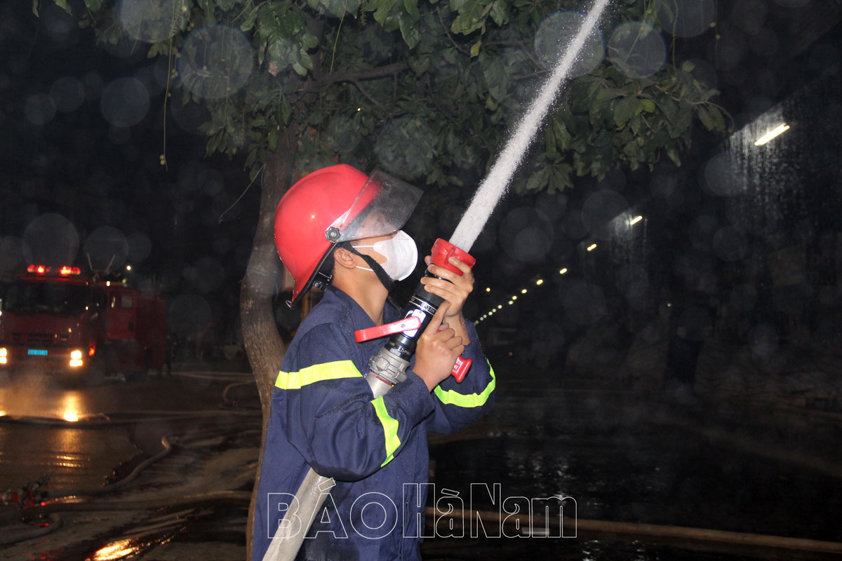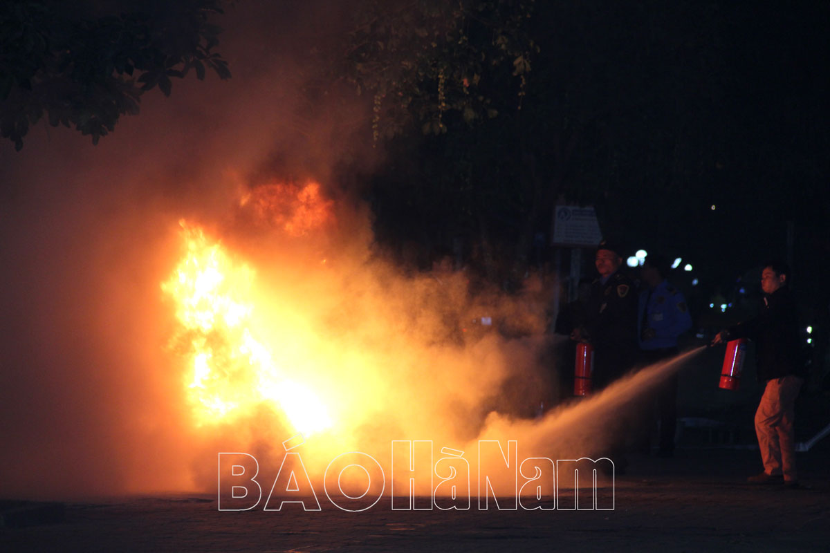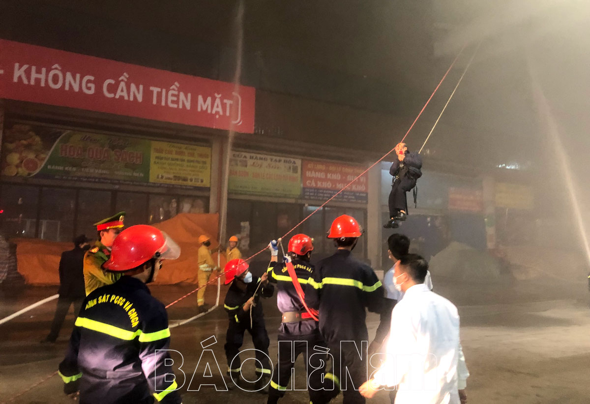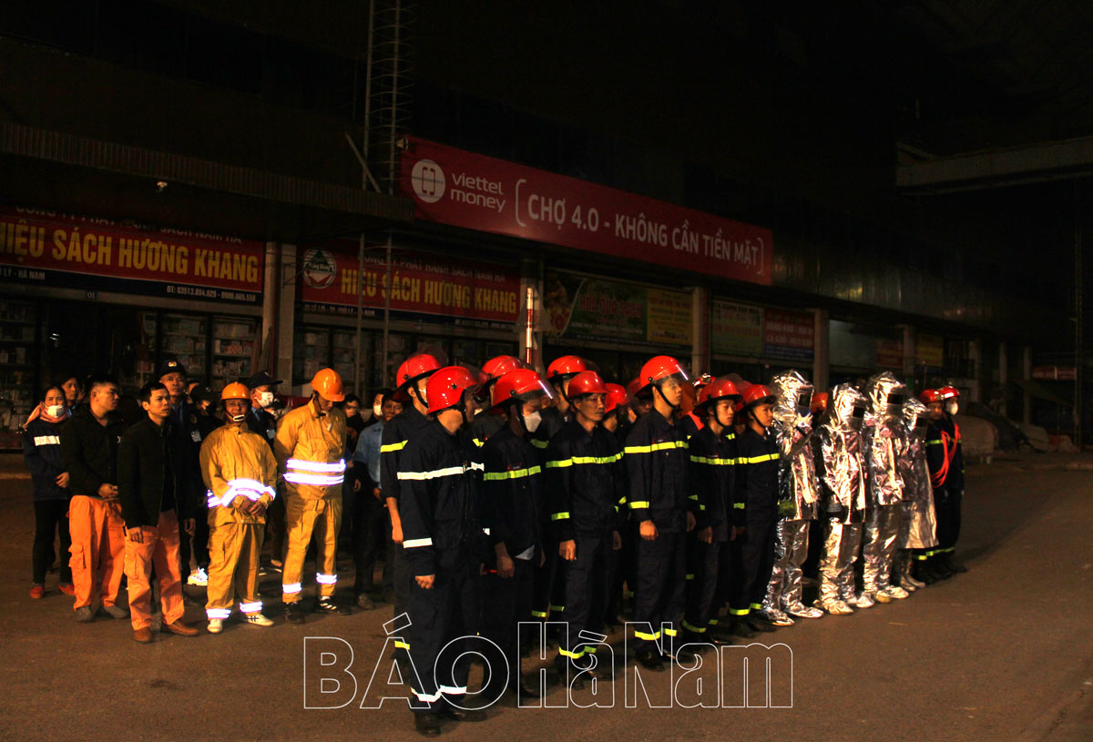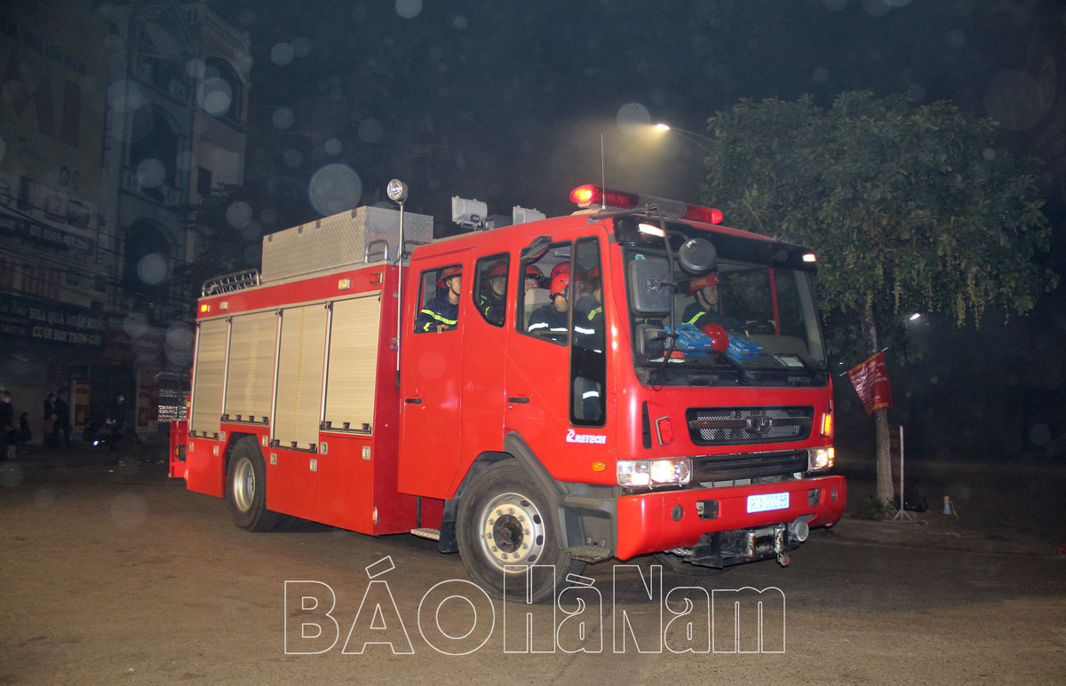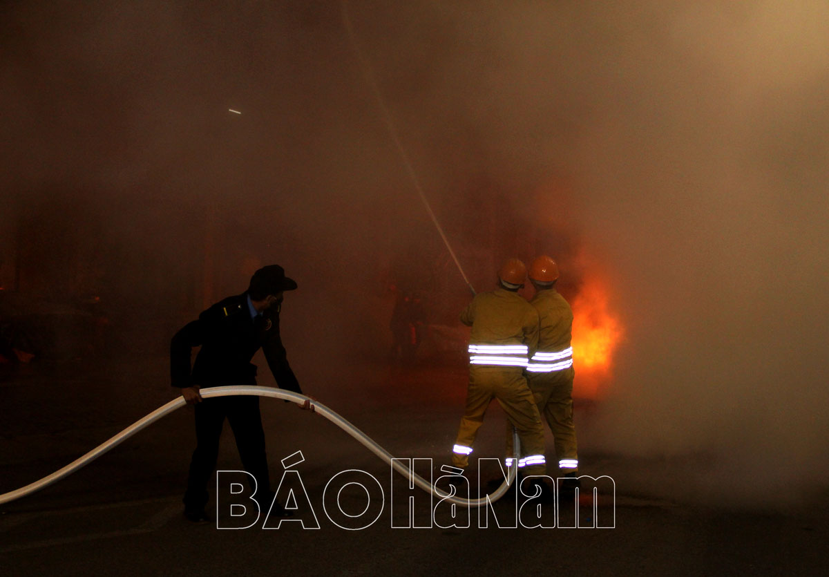 Tối 9/12, Công an tỉnh tổ chức diễn tập phương án chữa cháy và cứu nạn, cứu hộ (CNCH) huy động nhiều lực lượng tại Trung tâm thương mại và dịch vụ chợ Bầu – Công ty Cổ phần Châu Giang (đường Lê Lợi, phường Lương Khánh Thiện, TP. Phủ Lý).