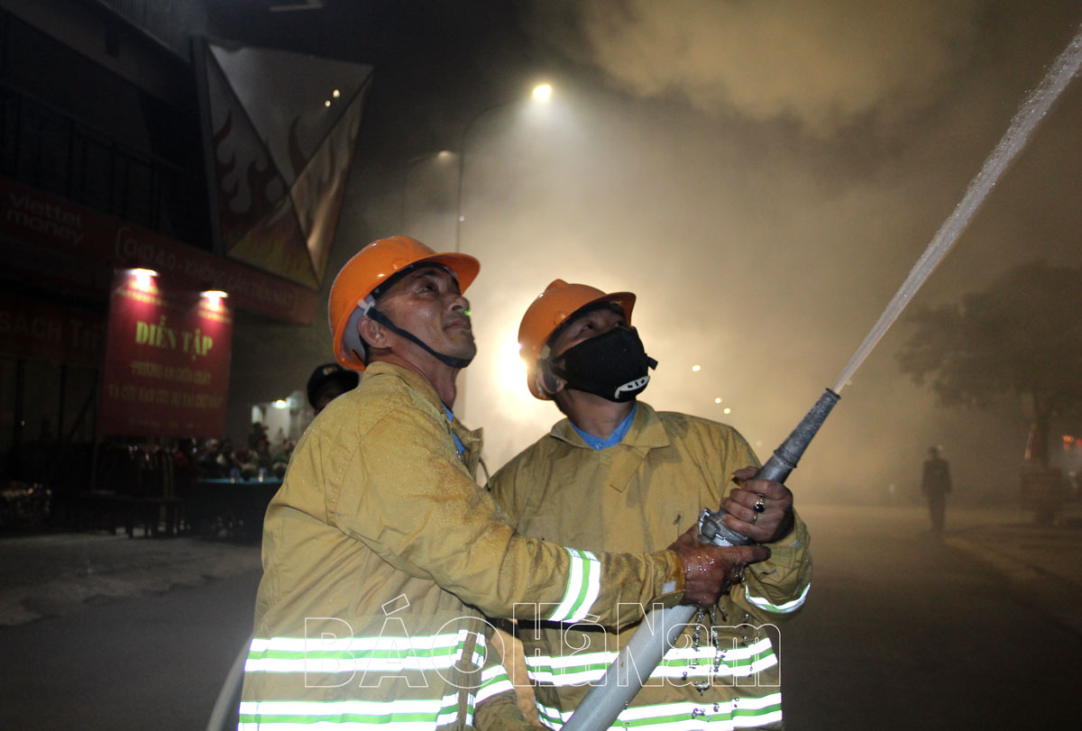 Phòng Cảnh sát PCCC và CNCH, Công an tỉnh đã huy động 60 cán bộ, chiến sỹ tham gia diễn tập phương án và 1 xe chỉ huy, 3 xe chữa cháy, 1 xe CNCH, 1 xe cứu thương, 2 máy bơm chữa cháy.