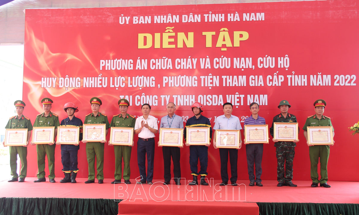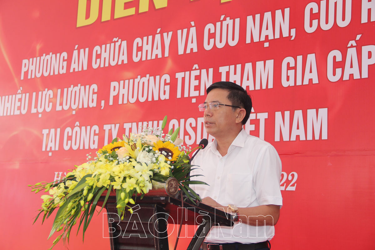 Sáng 3/10, tại Công ty TNHH Qisda Việt Nam (KCN Đồng Văn IV, xã Đại Cương, huyện Kim Bảng), UBND tỉnh tổ chức diễn tập phương án chữa cháy và cứu nạn, cứu hộ (CNCH) cấp tỉnh năm 2022. Đồng chí Trần Xuân Dưỡng, TUV, Phó Chủ tịch UBND tỉnh, Trưởng ban chỉ đạo diễn tập tỉnh đến dự, chỉ đạo diễn tập. Tham dự diễn tập còn có đại diện lãnh đạo Cục Cảnh sát Phòng cháy, chữa cháy (PCCC) và CNCH, Bộ Công an; lãnh đạo Công an các tỉnh Nam Định, Thái Bình, Ninh Bình, Hưng Yên; các đồng chí thành viên Ban chỉ đạo diễn tập; lãnh đạo các sở, ban, ngành, đoàn thể của tỉnh…