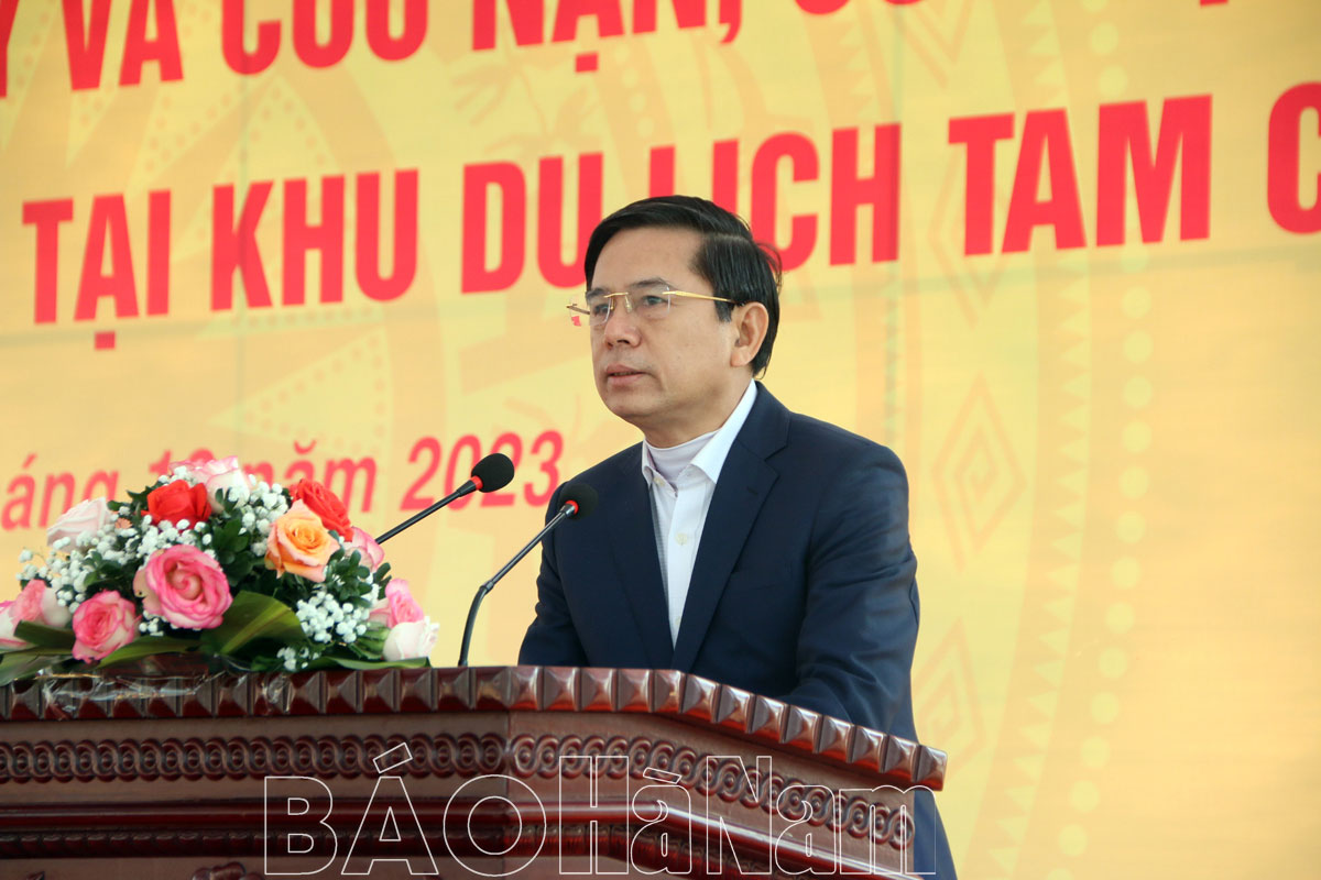 Chiều 22/12, tại Khu du lịch Quốc gia Tam Chúc (thị trấn Ba Sao, huyện Kim Bảng), Ban Chỉ đạo (BCĐ) phòng cháy chữa cháy (PCCC) và cứu nạn cứu hộ (CNCH) tỉnh tổ chức diễn tập phương án chữa cháy và CNCH cấp tỉnh năm 2023 huy động nhiều lực lượng, phương tiện cùng tham gia. Đồng chí Trần Xuân Dưỡng, Tỉnh ủy viên, Phó Chủ tịch UBND tỉnh, Trưởng BCĐ diễn tập tỉnh dự, chỉ đạo diễn tập.
