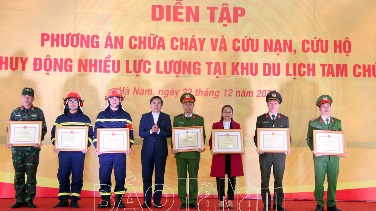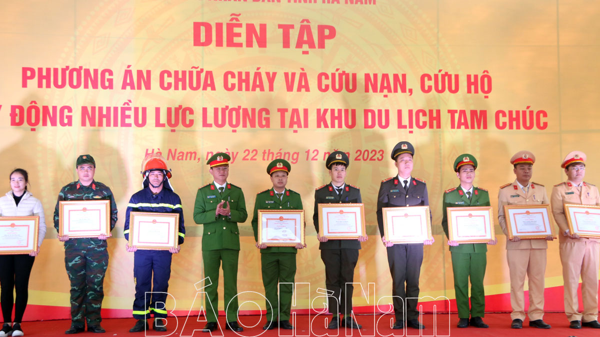 Kết thúc diễn tập, 8 tập thể, cá nhân đã được UBND tỉnh tặng bằng khen vì đã có thành tích xuất sắc trong tham mưu, tổ chức diễn tập phương án PCCC và CNCH. Nhiều tập thể, cá nhân được Giám đốc Công an tỉnh tặng giấy khen vì có thành tích xuất sắc trong công tác chỉ đạo, tham gia diễn tập phương án PCCC và CNCH cấp tỉnh năm 2023./.