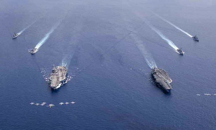 Lần đầu tiên trong vòng 6 năm, hai tàu sân bay của Mỹ cùng diễn tập quân sự ở khu vực Biển Đông.