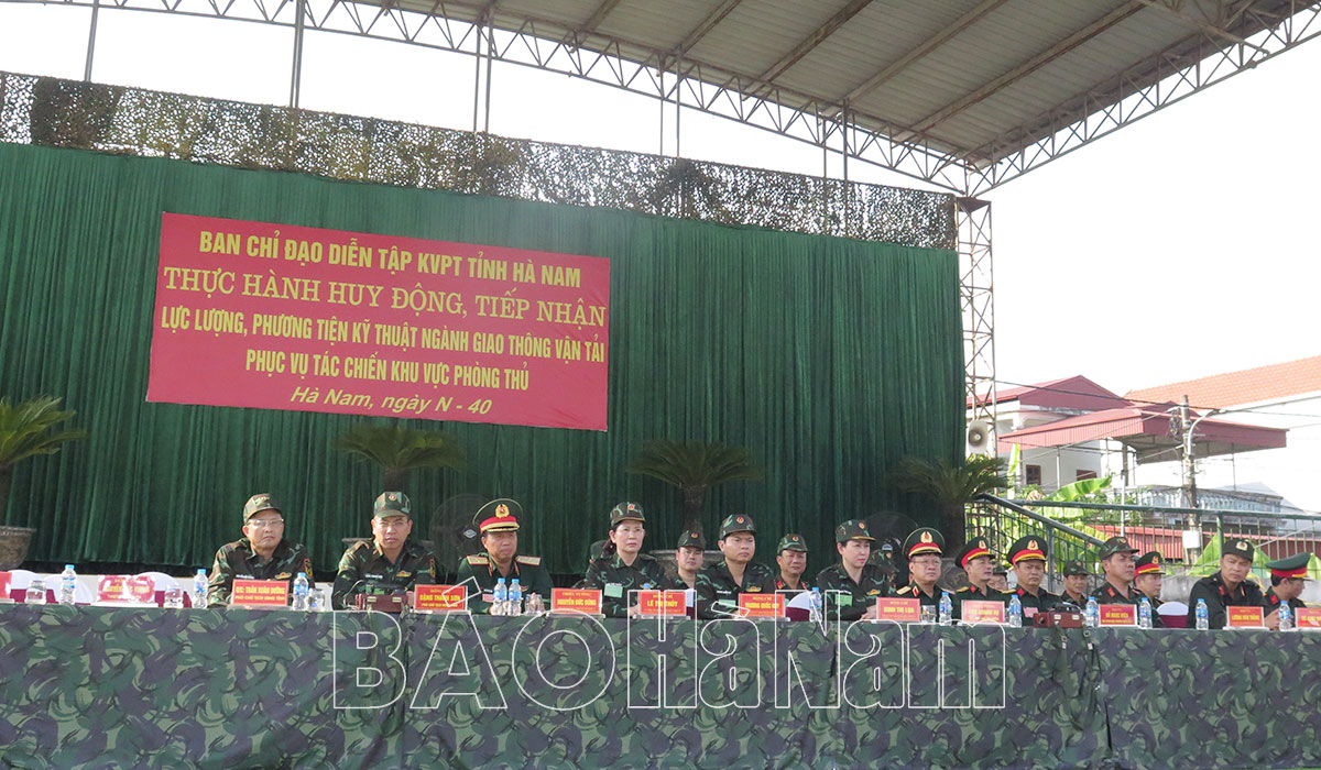 Tiếp tục các nội dung diễn tập khu vực phòng thủ (KVPT) tỉnh Hà Nam năm 2023, chiều 16/10 cuộc diễn tập KVPT tỉnh diễn ra các nội dung thực hành thực binh. Trong đó, nội dung thực hành huy động, tiếp nhận lực lượng, phương tiện ngành giao thông vận tải phục vụ tác chiến KVPT do Giám đốc Sở Giao thông vận tải điều hành; nội dung thực hành sơ tán nhân dân, thông báo, báo động phòng không, đánh địch tiến công hoả lực bảo vệ mục tiêu và khắc phục hậu quả do Chỉ huy trưởng Bộ CHQS tỉnh chỉ huy thực hiện.