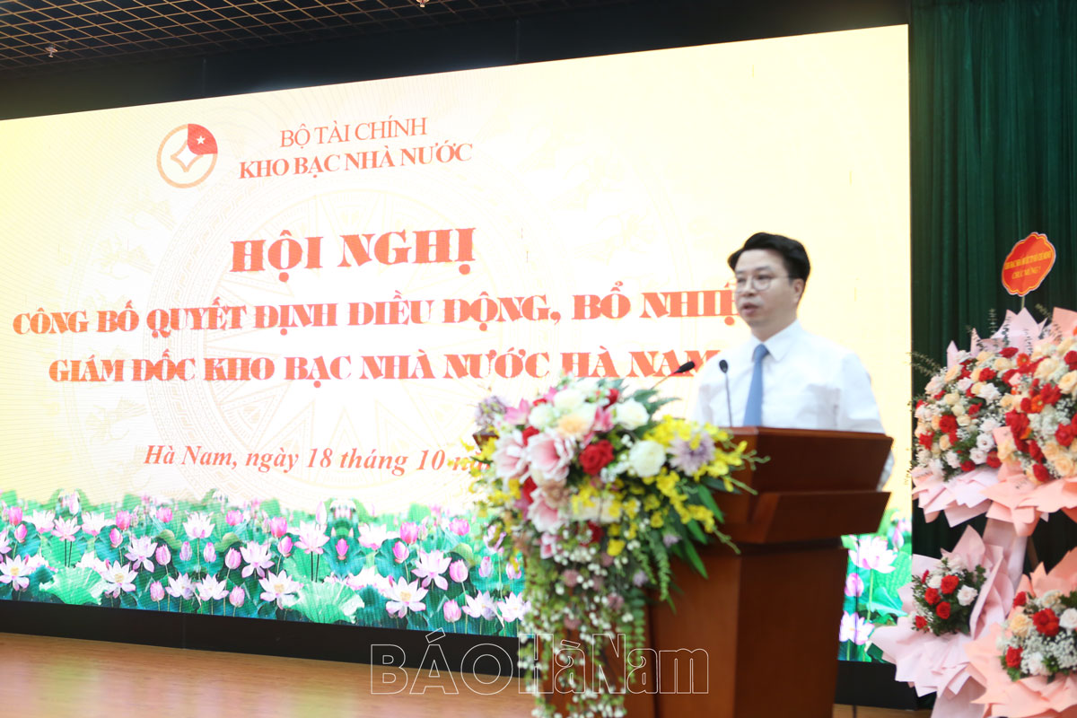 Chiều 18/10, tại Kho bạc Nhà nước Hà Nam, Kho bạc Nhà nước tổ chức hội nghị công bố quyết định điều động, bổ nhiệm đồng chí Trần Quang Nguyên, Giám đốc Kho bạc Nhà nước Lạng Sơn giữ chức vụ Giám đốc Kho bạc Nhà nước Hà Nam.