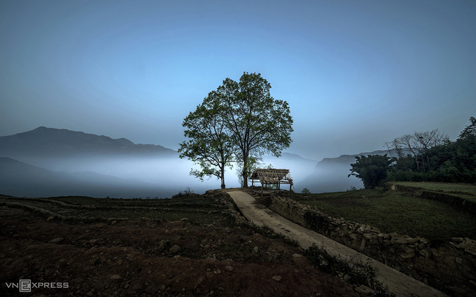 Mây trôi ở bản Choản Thèn, Y Tý lúc chiều tối. Ảnh: Phạm Ngọc Thạch.