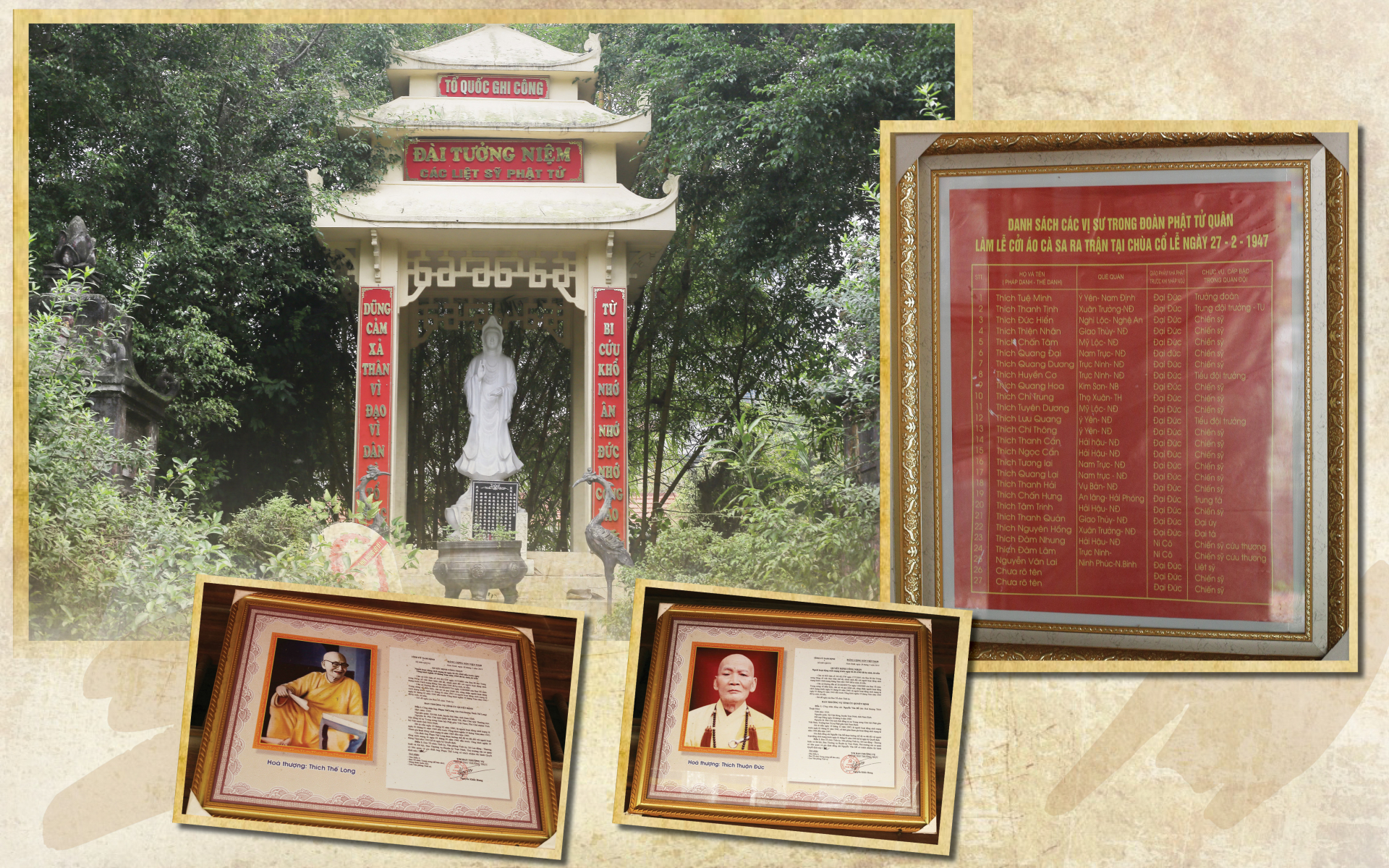 rong không khí thiêng liêng của “tháng 7 tri ân”, tới thăm Chùa Cổ Lễ (Trực Ninh), thắp nén nhang tại Đài tưởng niệm các Liệt sĩ Phật tử, chúng tôi nhớ câu chuyện cảm động trong một buổi trò chuyện với Đại tá Đinh Thế Hinh, quê làng Liêu Thượng, xã Xuân Thành (Xuân Trường), nguyên nhà sư pháp danh Đại đức Thích Pháp Lữ, là một trong 27 tăng ni đầu tiên của Chùa Cổ Lễ (Trực Ninh) khởi nguyện xung kích vào đội quân “Nghĩa sĩ phật tử” ngày 27-2-1947. Đại tá Đinh Thế Hinh kể: “Cuối năm 1946, giặc Pháp tiến hành chiếm đóng các tỉnh, Thành phố Hà Nội, Hải Phòng, Nam Định. Thế nước lâm nguy, Hồ Chủ tịch đã ra "Lời kêu gọi toàn quốc kháng chiến" hiệu triệu toàn dân tộc, đứng lên chống giặc ngoại xâm cứu nước. Hòa thượng Thích Thế Long, khi đó là trụ trì chùa Cổ Lễ, đã phát động thành lập đội "nghĩa sĩ phật tử", cho phép các tăng, ni tạm rời cửa thiền ra chiến trường tham gia đánh giặc cứu nước. Sau các nghi lễ tại chùa để tạm "cởi áo cà sa khoác chiến bào", 27 nhà sư đã trở thành 27 chiến sĩ Vệ quốc đoàn. Trong những trận giao chiến với quân Pháp, bảo vệ thành phố Nam Định, cố thủ cao điểm Non Nước (Ninh Bình), đơn vị “Nghĩa sĩ phật tử” chiến đấu dũng cảm, lập công xuất sắc. Tiếc thay, 12 vị đã anh dũng hy sinh! Đó là những tấm gương “Quyết tử cho Tổ quốc quyết sinh” của các liệt sĩ - nhà sư.