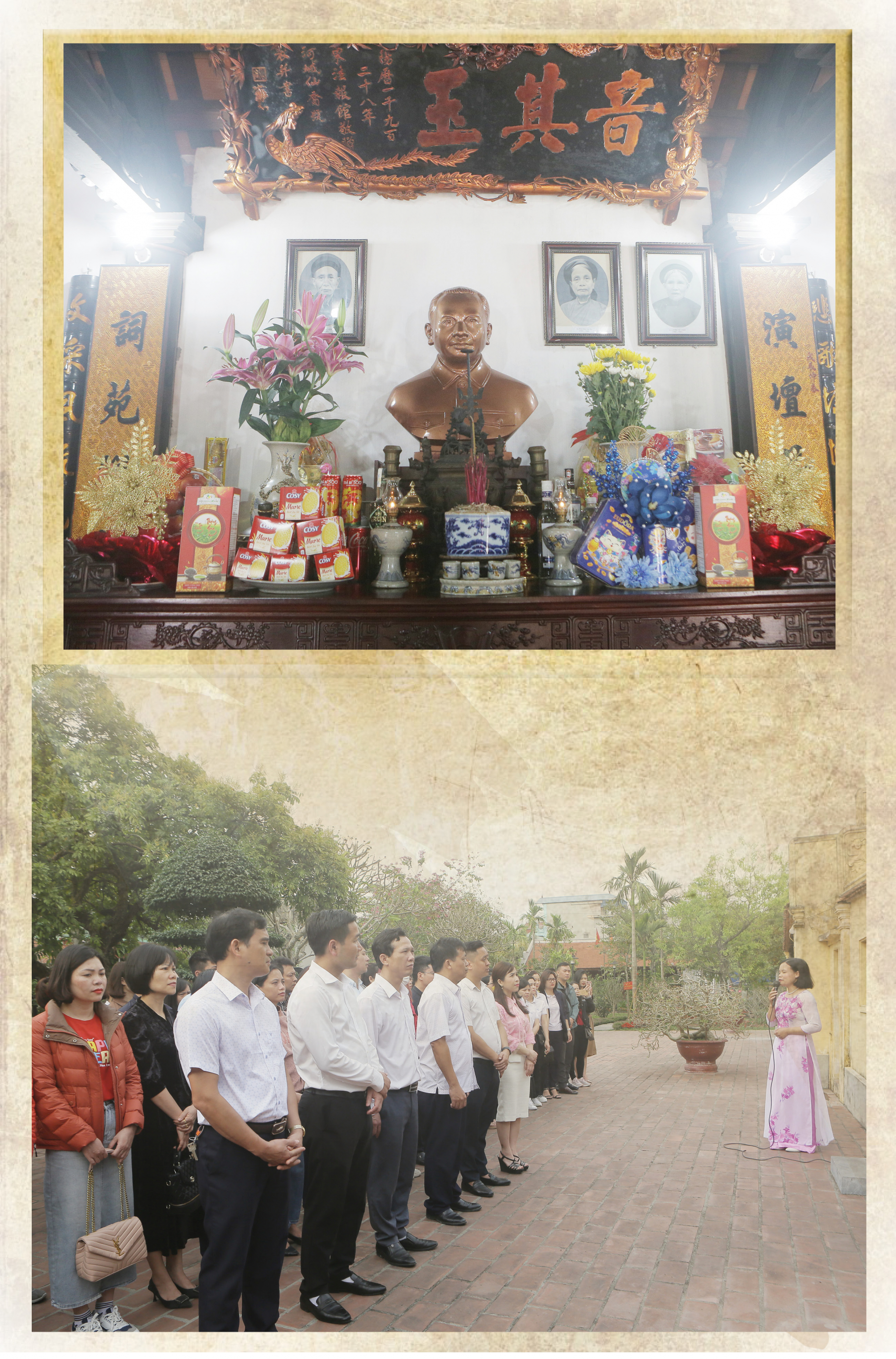 | Hướng dẫn viên giới thiệu cuộc đời và sự nghiệp hoạt động cách mạng của đồng chí Trường Chinh tại Nhà lưu niệm Tổng Bí thư Trường Chinh, xã Xuân Hồng (Xuân Trường). |