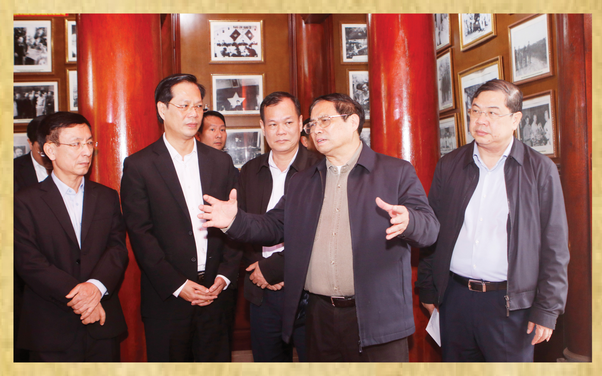 | Thủ tướng Chính phủ Phạm Minh Chính và các đồng chí lãnh đạo tỉnh tham quan Khu tưởng niệm đồng chí Lê Đức Thọ, xã Nam Vân (thành phố Nam Định). |