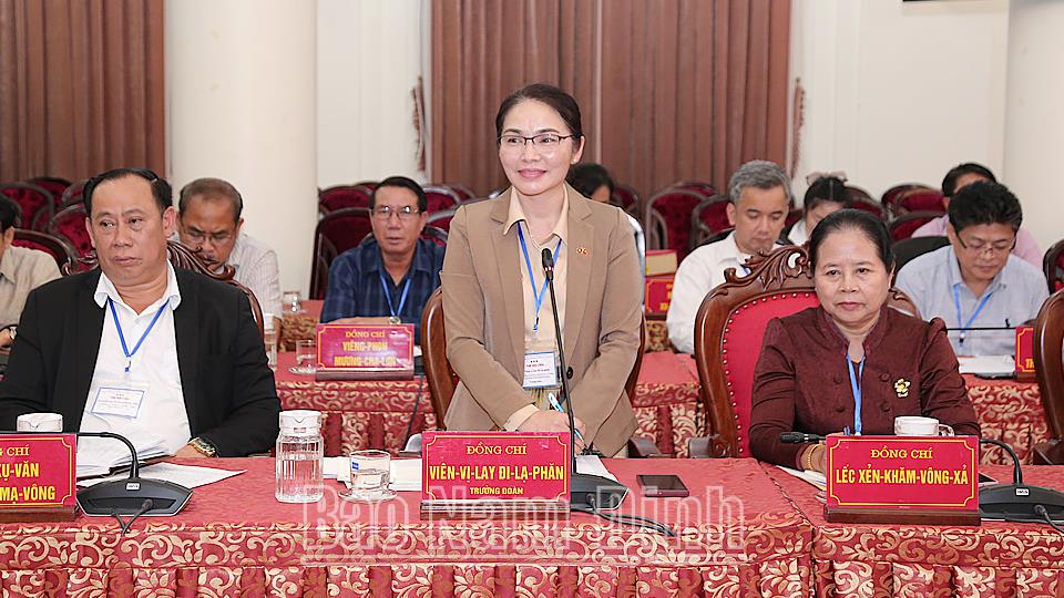 Thay mặt Đoàn cán bộ lãnh đạo, quản lý của Đảng Nhân dân Cách mạng Lào, đồng chí Trưởng đoàn Viên-vị-lay Đi-lạ-phăn đã cảm ơn sự đón tiếp trọng thị của các đồng chí lãnh đạo tỉnh dành cho đoàn; bày tỏ sự vui mừng được đến thăm, làm việc tại tỉnh Nam Định, một địa phương điển hình của Việt Nam trong xây dựng NTM. Qua chuyến công tác giúp đoàn hiểu thêm về những kinh nghiệm, cách làm hay của các cấp ủy, chính quyền tỉnh Nam Định trong lãnh đạo, chỉ đạo, tổ chức thực hiện thắng lợi các chỉ thị, nghị quyết của Đảng, các mục tiêu, nhiệm vụ phát triển kinh tế - xã hội; những mô hình mới, cách làm hay trong công tác xây dựng Đảng, hệ thống chính trị. Qua đó góp phần vun đắp quan hệ hữu nghị, hợp tác toàn diện giữa hai Đảng, hai Nhà nước và Nhân dân hai nước, xứng đáng với sự mong đợi của Chủ tịch Hồ Chí Minh, Chủ tịch Cayxỏn Phômvihản lúc sinh thời.