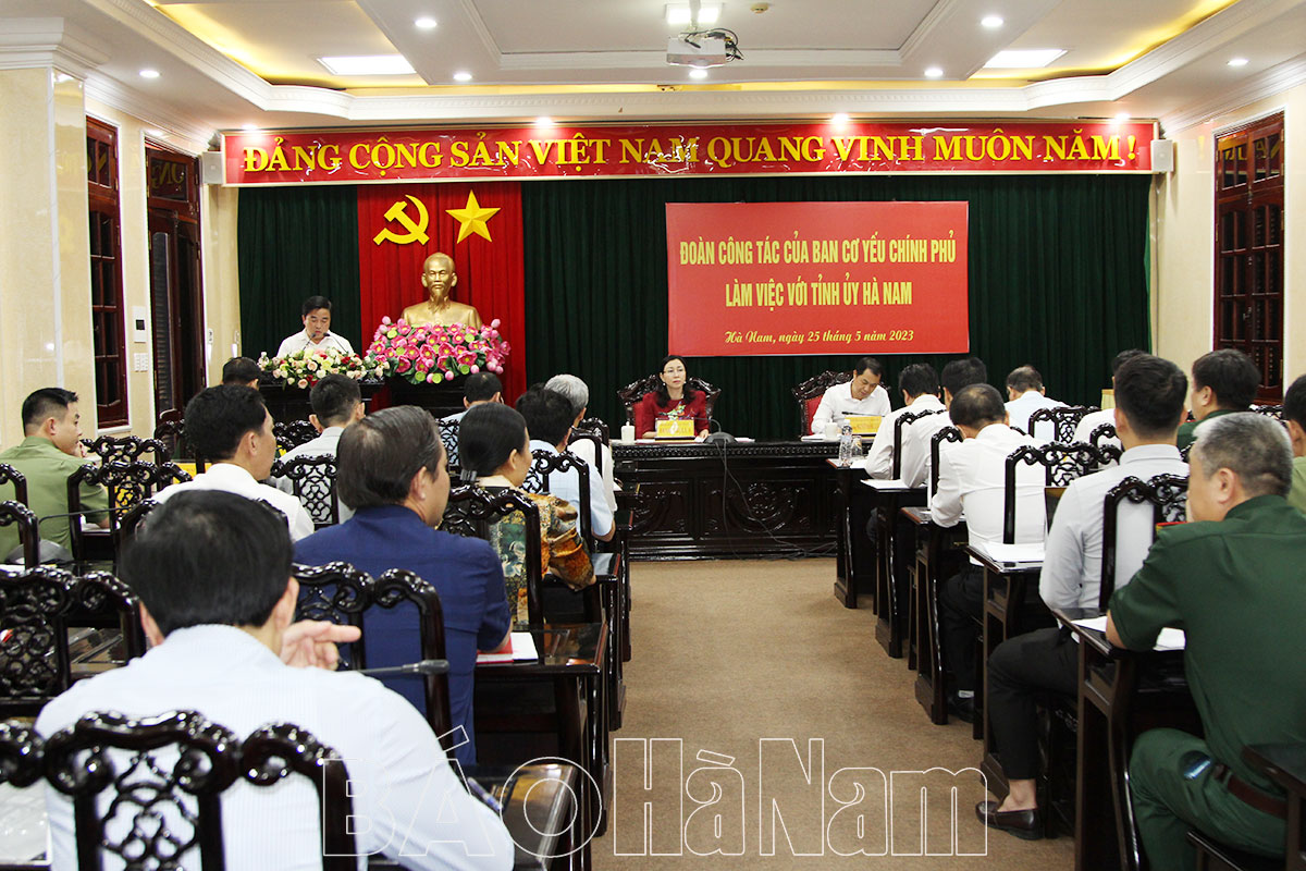 Đoàn công tác của Ban Cơ yếu Chính phủ làm việc với Tỉnh ủy Hà Nam