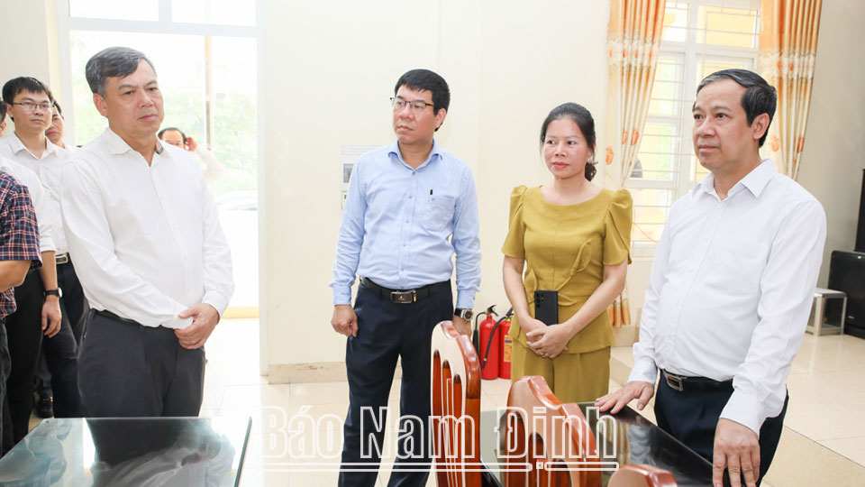 Sau hội nghị, Đoàn công tác của Bộ GD và ĐT và các đồng chí lãnh đạo tỉnh đã đi kiểm tra công tác chuẩn bị thi tốt nghiệp THPT 2023 tại Trường THPT Mỹ Lộc (Mỹ Lộc)./.