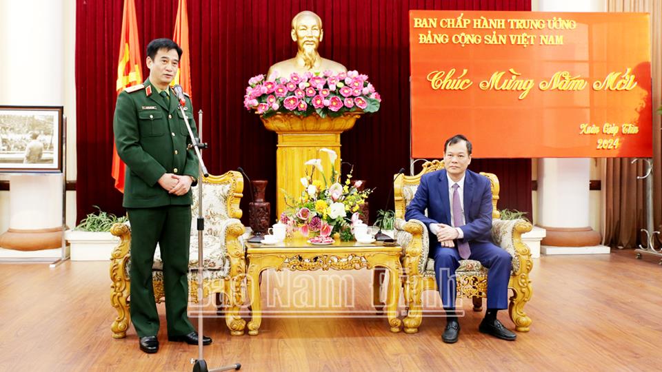Phát biểu tại buổi đón tiếp, đồng chí Thiếu tướng Nguyễn Viết Tuyên, Chánh Văn phòng Bộ Quốc phòng chuyển lời chúc mừng của Đại tướng Phan Văn Giang đến Đảng bộ, chính quyền và nhân dân tỉnh Nam Định về những kết quả nổi bật mà tỉnh đã đạt được trong năm vừa qua; đồng thời chúc tỉnh sang năm mới tiếp tục phát huy tiềm năng, thế mạnh, phát triển nhanh và bền vững hơn nữa.
