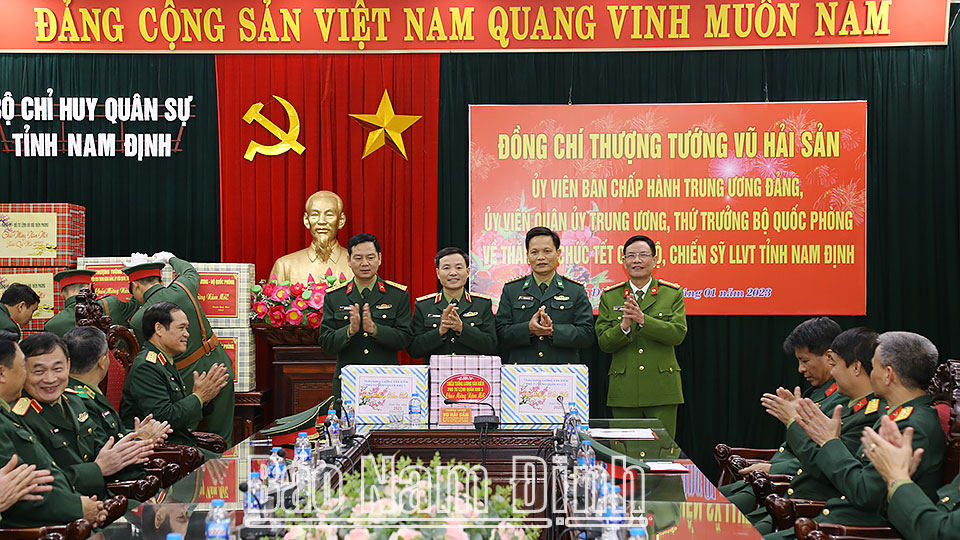 Nhân dịp đón Tết Nguyên đán Quý Mão 2023, thay mặt Quân ủy Trung ương, Bộ Quốc phòng, Thượng tướng Vũ Hải Sản, Thứ trưởng Bộ Quốc phòng đã tặng quà và chúc Tết cán bộ, chiến sĩ các cơ quan Bộ CHQS tỉnh, Công an tỉnh và Bộ Chỉ huy BĐBP tỉnh./.