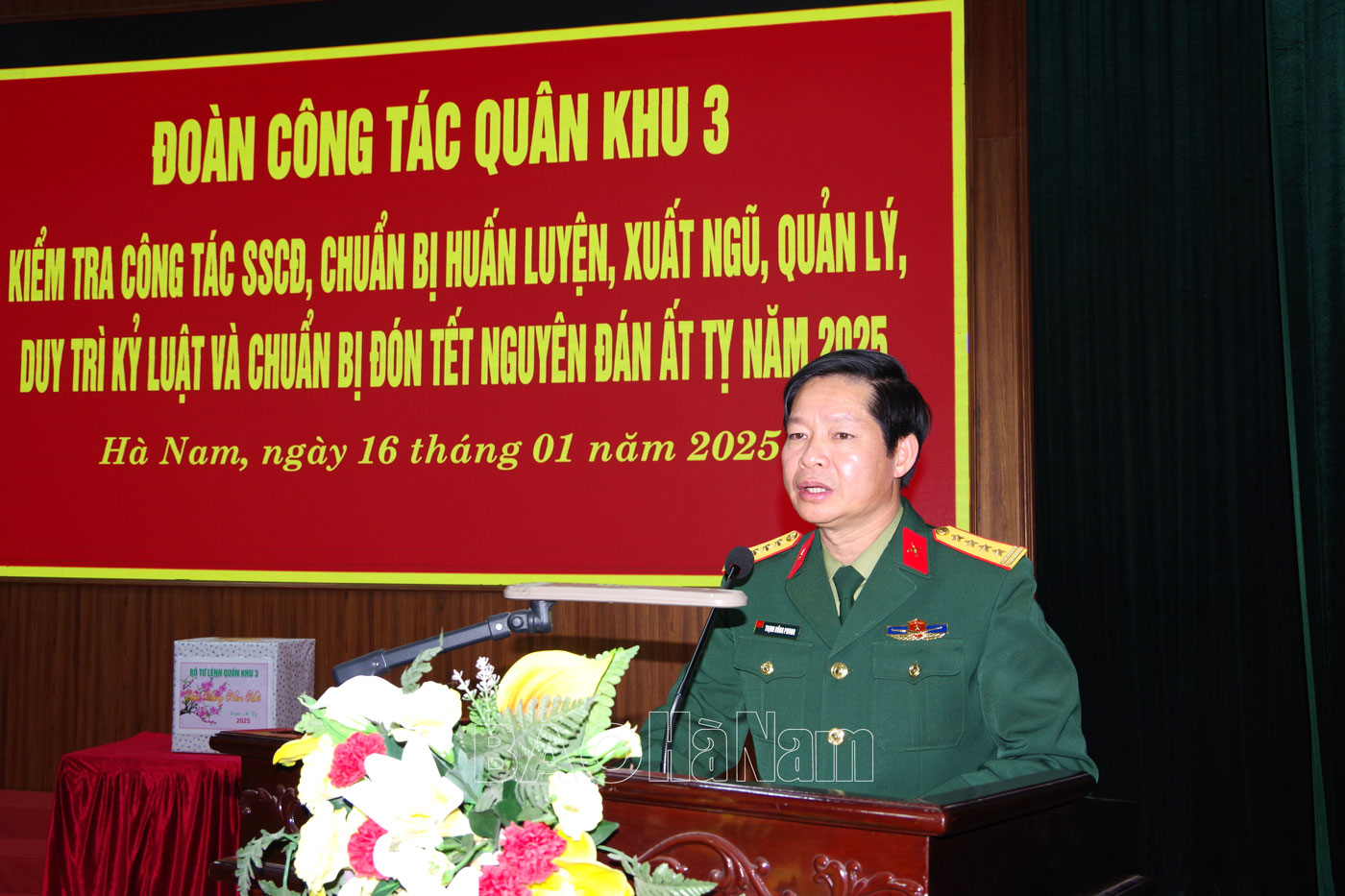 Đời sống nhân dân ngày càng được cải thiện, nâng cao. Hiện nay, cùng với các hoạt động chuẩn bị đón Tết Nguyên đán, tỉnh đang tích cực triển khai việc sắp xếp, sáp nhập, tinh gọn tổ chức bộ máy trên tinh thần chỉ đạo của Trung ương. Đồng thời chỉ đạo tổ chức đại hội đảng bộ các cấp. Đồng chí Phó Bí thư thường trực Tỉnh ủy mong rằng thời gian tới tỉnh tiếp tục nhận được sự quan tâm, hỗ trợ của Quân khu 3 trong lãnh đạo, chỉ đạo thực hiện nhiệm vụ công tác QP, QSĐP, góp phần hoàn thành tốt chỉ tiêu Nghị quyết Đại hội Đảng bộ tỉnh lần thứ XX đề ra, bảo đảm an ninh, an toàn địa bàn, góp phần xây dựng tỉnh Hà Nam ngày càng phát triển.