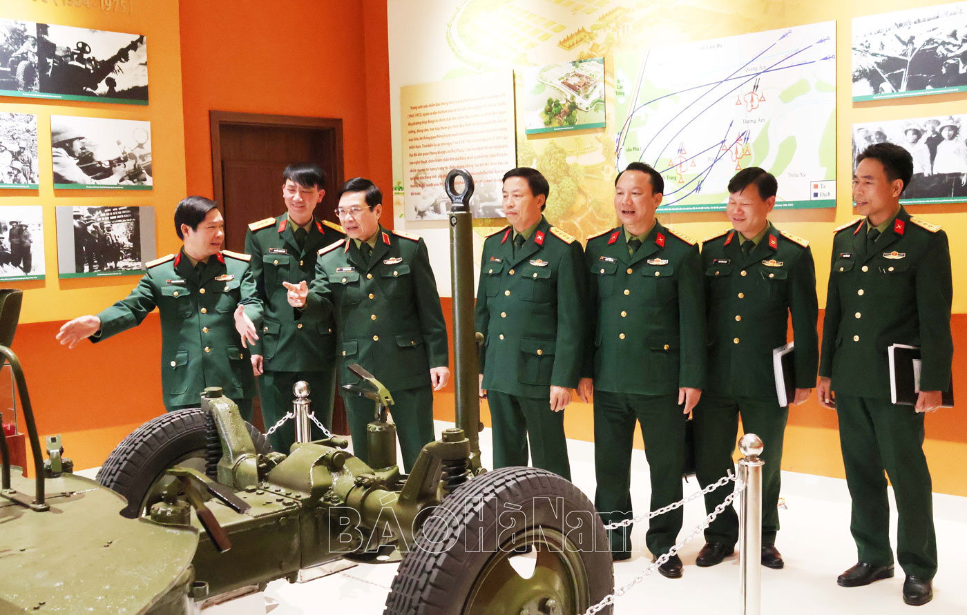 Thiếu tướng Bùi Công Chức tặng quà Bộ CHQS tỉnh. Các đồng chí lãnh đạo Quân khu 3 thăm Nhà truyền thống LLVT tỉnh.