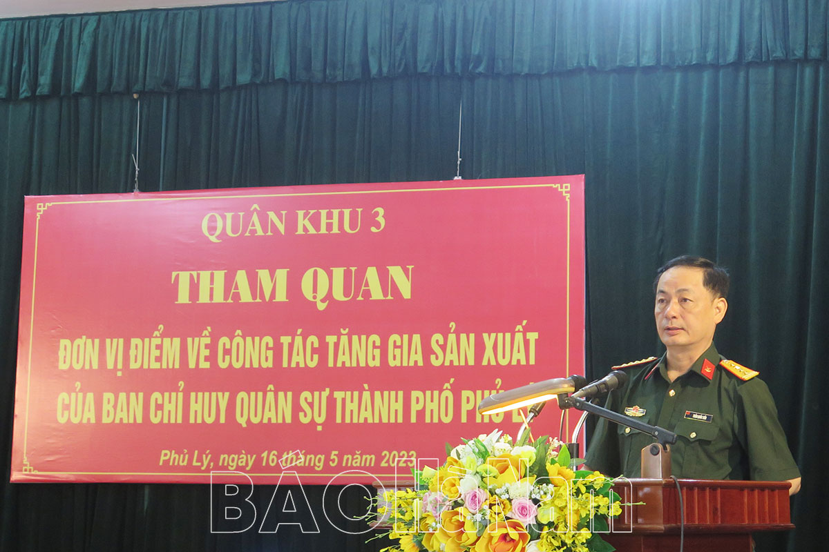 Sáng 16/5, đoàn công tác của Cục Hậu cần Quân khu 3 do Đại tá Trần Quốc Tiến – Chủ nhiệm Hậu cần Quân khu làm trưởng đoàn đã về tham quan đơn vị điểm về công tác tăng gia sản xuất tại Ban CHQS thành phố Phủ Lý. Cùng tham gia đoàn có các đồng chí: thủ trưởng Bộ CHQS, chỉ huy phòng Hậu cần Bộ CHQS 9 tỉnh, thành phố trên địa bàn Quân khu; chỉ huy, chính trị viên 6 huyện, thị xã, thành phố và Trung đoàn 151 (Bộ CHQS tỉnh). Đón và làm việc với đoàn có các đồng chí lãnh đạo, chỉ huy Ban CHQS thành phố Phủ Lý, Bộ CHQS tỉnh.