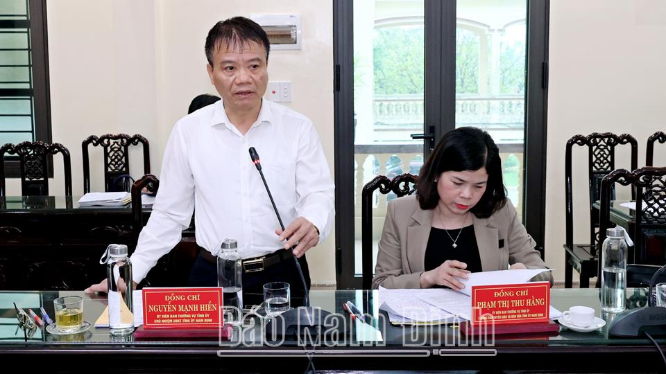| Đồng chí Chủ nhiệm Uỷ ban Kiểm tra Tỉnh uỷ Nguyễn Mạnh Hiền phát biểu tại buổi làm việc. |
