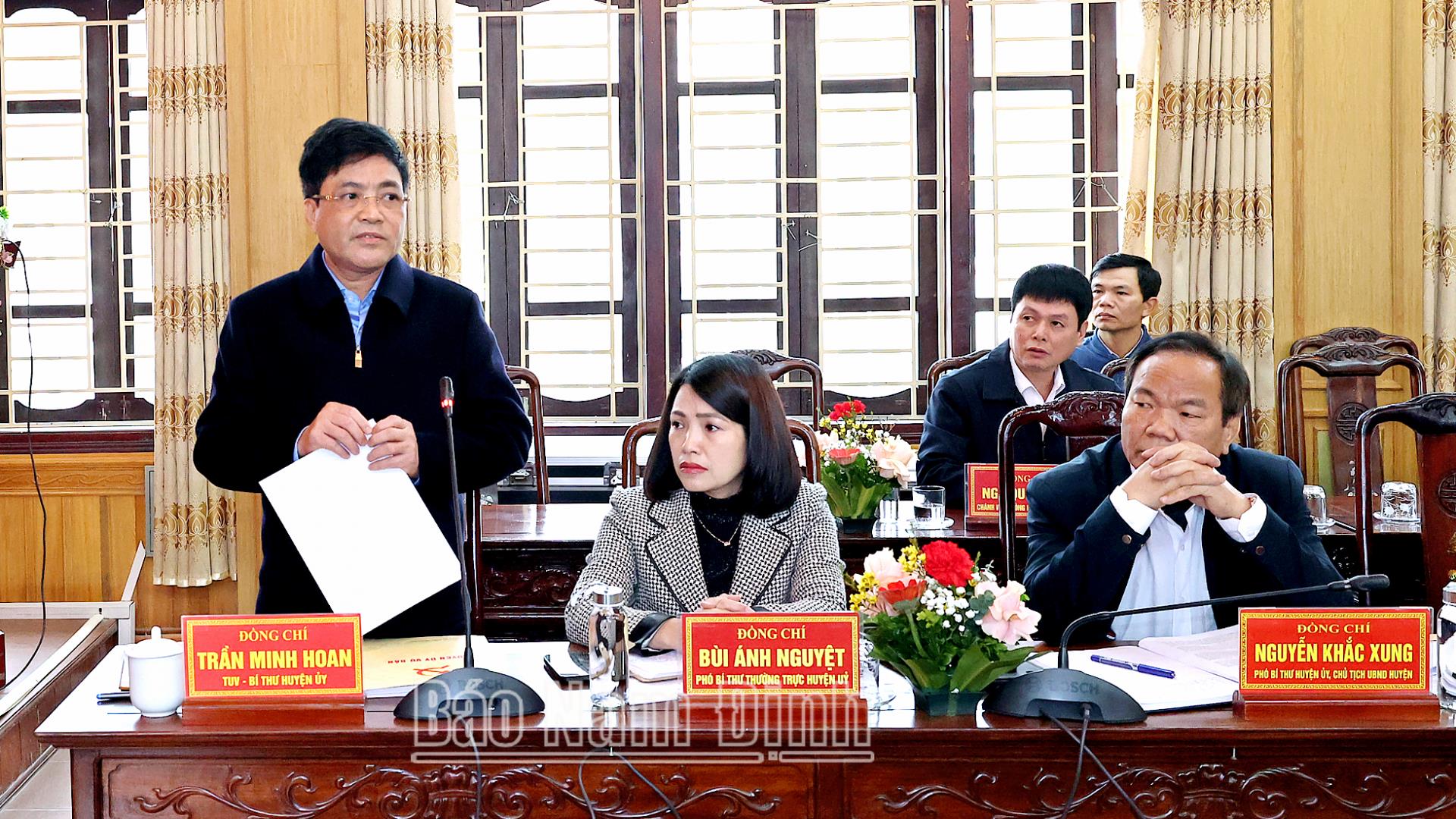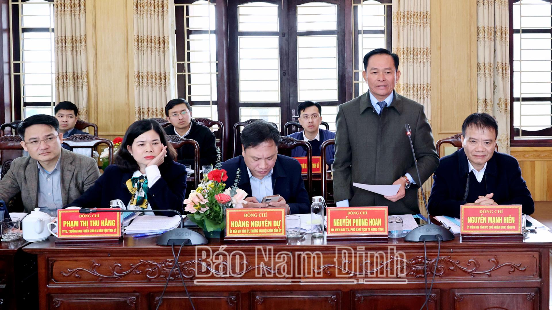 Tại buổi làm việc, đồng chí Phó Bí thư Thường trực Tỉnh uỷ Lê Quốc Chỉnh và các đồng chí Ủy viên Ban TVTU, thành viên Đoàn công tác của tỉnh đã phát biểu đóng góp nhiều ý kiến gợi mở để huyện Vụ Bản phát triển nhanh hơn, bền vững hơn trong xu thế phát triển nhanh của tỉnh Nam Định.