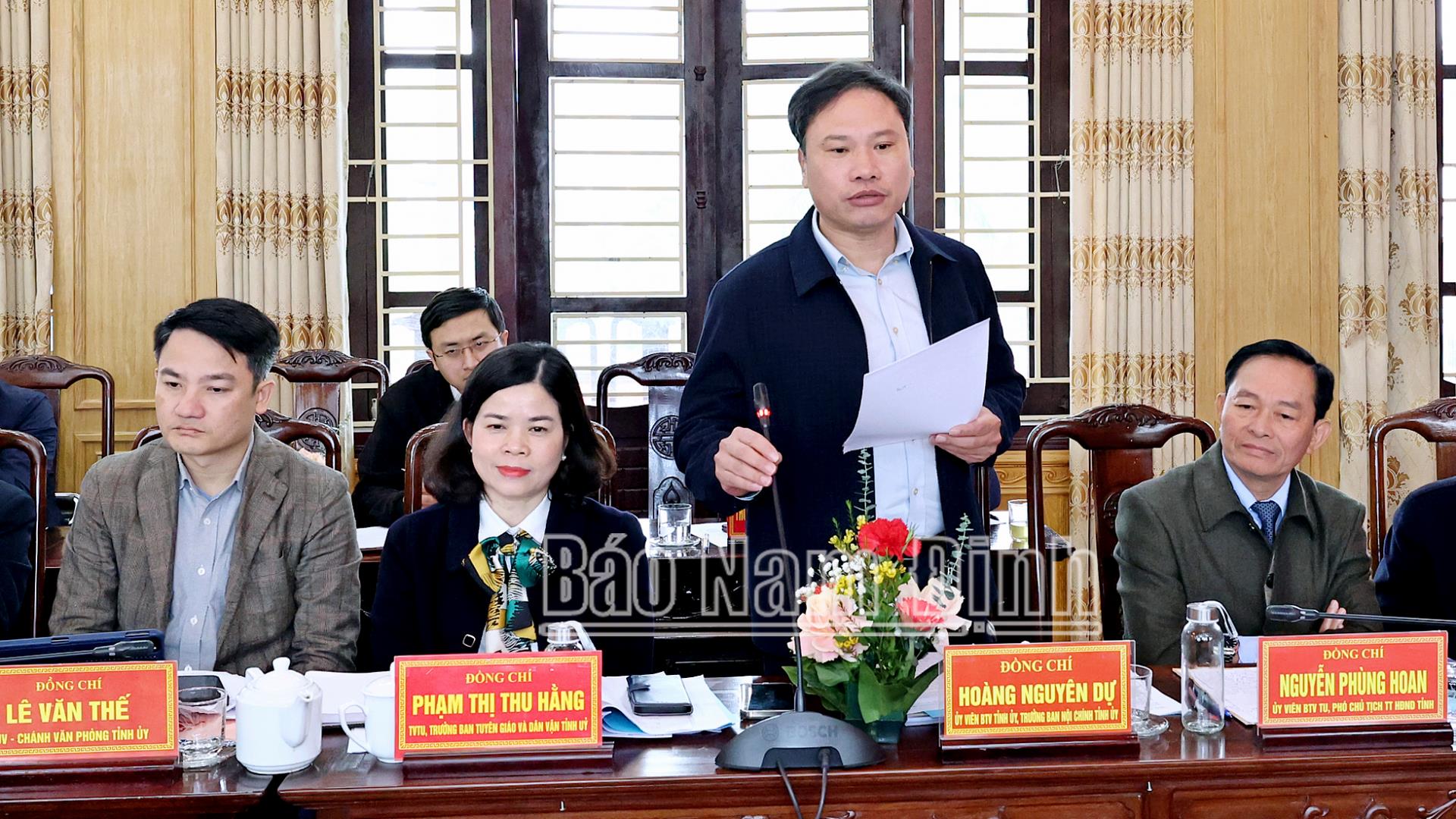| Đồng chí Trưởng Ban Nội chính Tỉnh ủy Hoàng Nguyên Dự phát biểu tại buổi làm việc. |