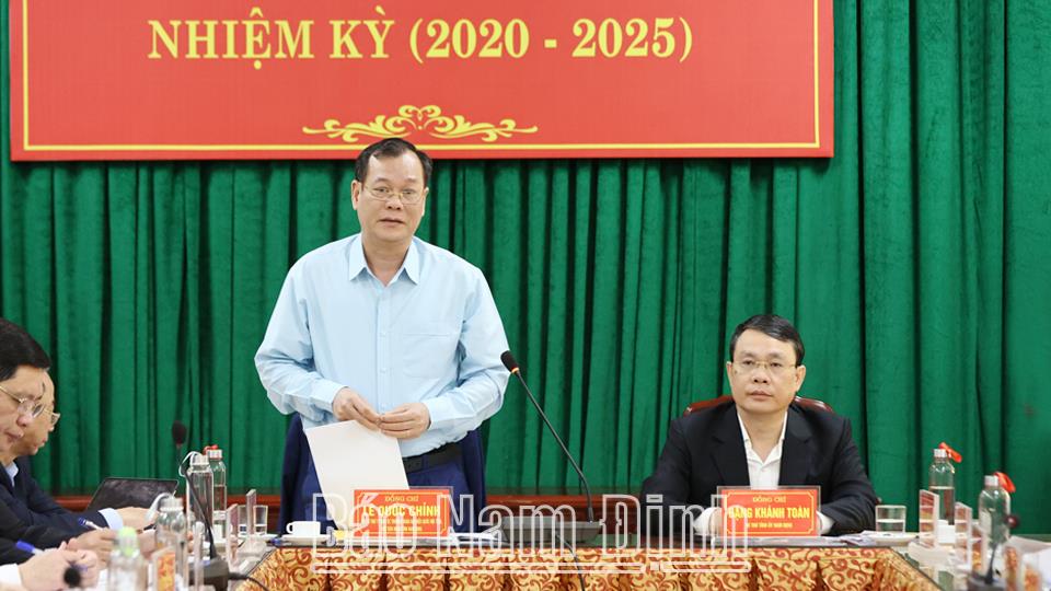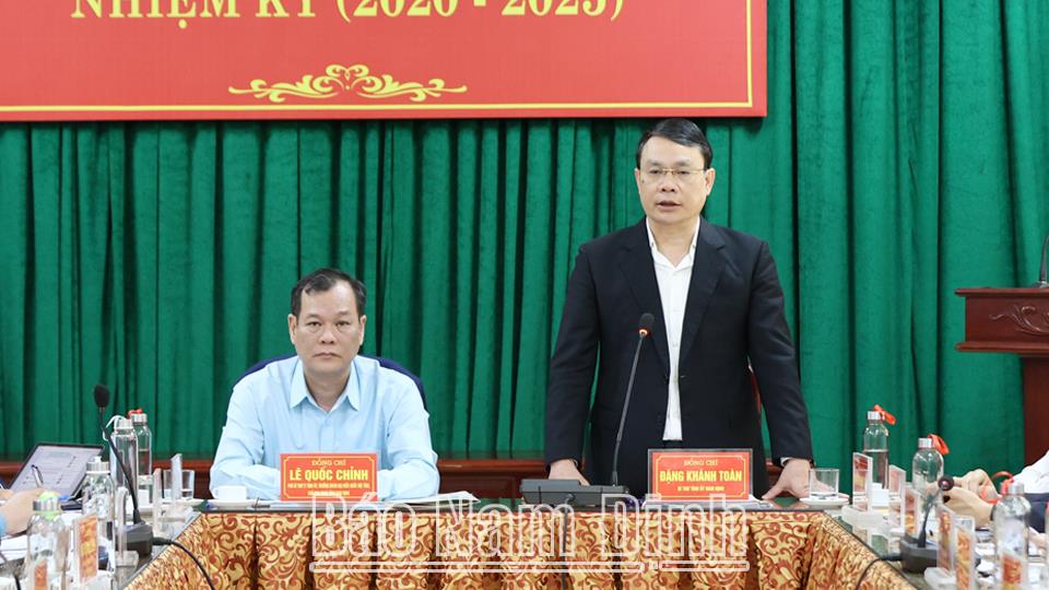 Phát biểu chỉ đạo, đồng chí Bí thư Tỉnh uỷ Đặng Khánh Toàn ghi nhận, biểu dương những nỗ lực, cố gắng của Đảng bộ, chính quyền và nhân dân huyện Xuân Trường thời gian qua; đồng thuận với định hướng phát triển của địa phương trong những năm tới. Đồng chí Bí thư Tỉnh ủy đề nghị Ban Thường vụ Huyện ủy Xuân Trường tiếp thu nghiêm túc tất cả các ý kiến Đoàn công tác của tỉnh đã gợi mở, làm căn cứ, định hướng, mục tiêu để huyện phát triển nhanh hơn, bền vững hơn, đóng góp vào sự phát triển chung của tỉnh.