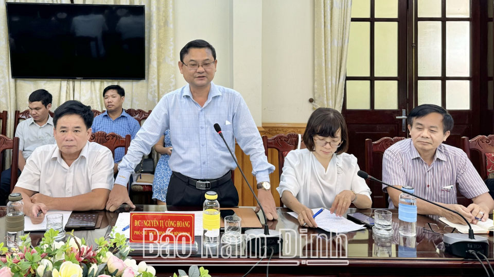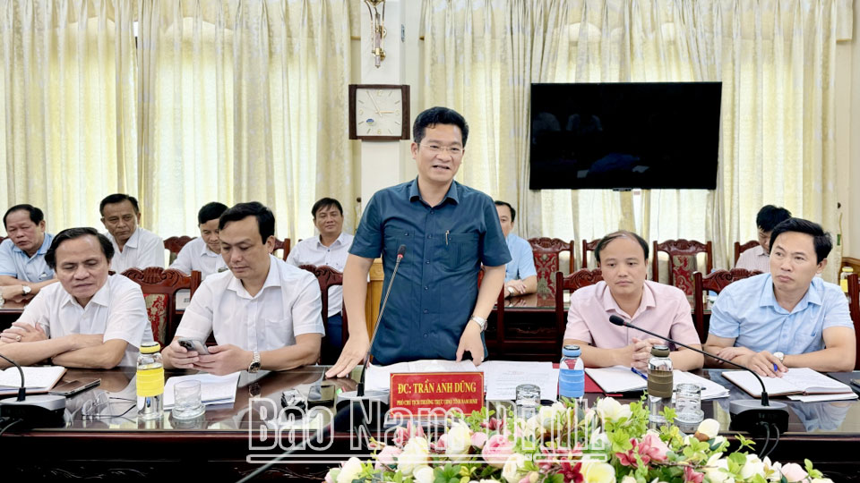 | Đồng chí Trần Anh Dũng, Uỷ viên Ban TVTU, Phó Chủ tịch Thường trực UBND tỉnh Nam Định phát biểu tại buổi làm việc. |