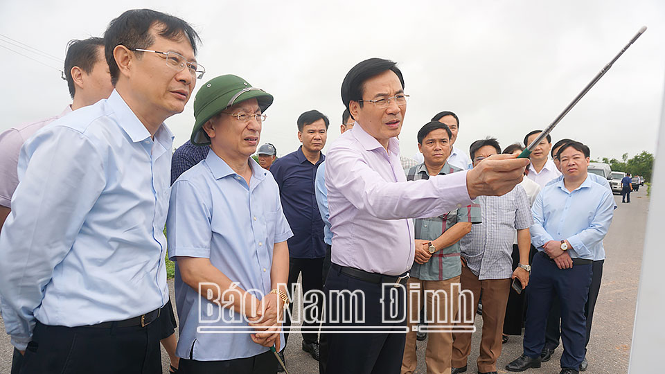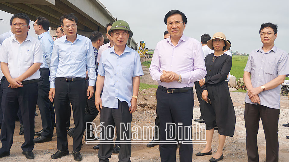 | Các đồng chí: Trần Văn Sơn, Ủy viên BCH Trung ương Đảng, Bộ trưởng, Chủ nhiệm Văn phòng Chính phủ; Phạm Đình Nghị, Phó Bí thư Tỉnh ủy, Chủ tịch UBND tỉnh kiểm tra Dự án tuyến cao tốc Ninh Bình- Nam Định- Thái Bình đoạn qua xã Xuân Tân (Xuân Trường) |