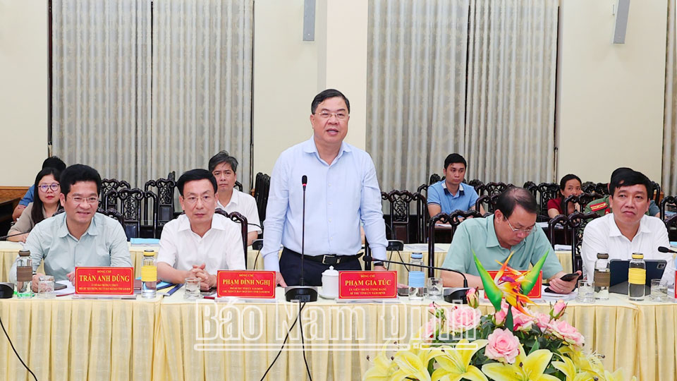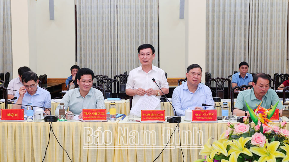 Phát biểu tại buổi làm việc, đồng chí Bí thư Tỉnh ủy Phạm Gia Túc và đồng chí Chủ tịch UBND tỉnh Phạm Đình Nghị khẳng định: Quá trình xây dựng Đề án, Nam Định thực hiện nghiêm túc chủ trương, chỉ đạo của Bộ Chính trị, Ban Bí thư, các văn bản hướng dẫn của Trung ương. Thường trực, Ban TVTU, BCH Đảng bộ tỉnh, lãnh đạo UBND tỉnh lãnh đạo, chỉ đạo quyết liệt đối với Đề án sắp xếp ĐVHC cấp huyện, cấp xã giai đoạn 2023-2025 của tỉnh, coi đây là nhiệm vụ chính trị trọng tâm của địa phương trong thời điểm hiện tại cũng như trong thời gian tới. Đề án hiện nay là phương án tốt nhất tỉnh Nam Định đã lựa chọn, xây dựng. Trong quá trình thực hiện Đề án, tỉnh luôn quan tâm đến phương án sắp xếp, kiện toàn tổ chức bộ máy của các cơ quan, tổ chức; phương án sắp xếp cán bộ, công chức, viên chức, người lao động; phương án xử lý trụ sở, tài sản công ở cấp huyện, cấp xã và những vấn đề khác liên quan. Trên cơ sở những ý kiến góp ý của Đoàn công tác, tỉnh sẽ rà soát, đánh giá lại toàn bộ Đề án để hoàn thiện trình Bộ Nội vụ xem xét, cho ý kiến. Các đồng chí lãnh đạo tỉnh cảm ơn sự quan tâm của các bộ, ngành, cơ quan Trung ương, của Đoàn công tác và mong muốn Đoàn công tác tiếp tục giúp đỡ, tạo điều kiện để Đề án sắp xếp ĐVHC cấp huyện, cấp xã giai đoạn 2023-2025 của tỉnh sớm được triển khai thực hiện.