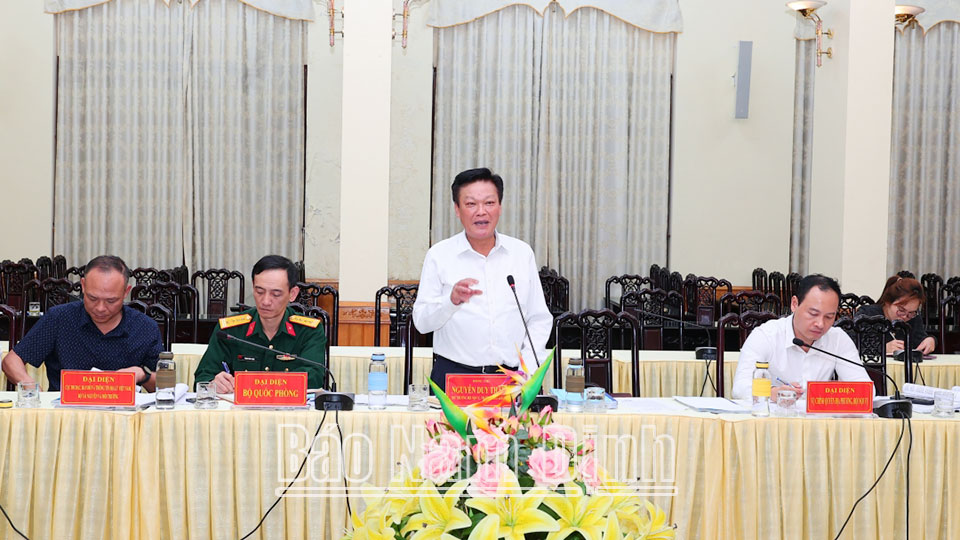 | Đồng chí Chủ tịch UBND tỉnh Phạm Đình Nghị phát biểu tại buổi làm việc. |