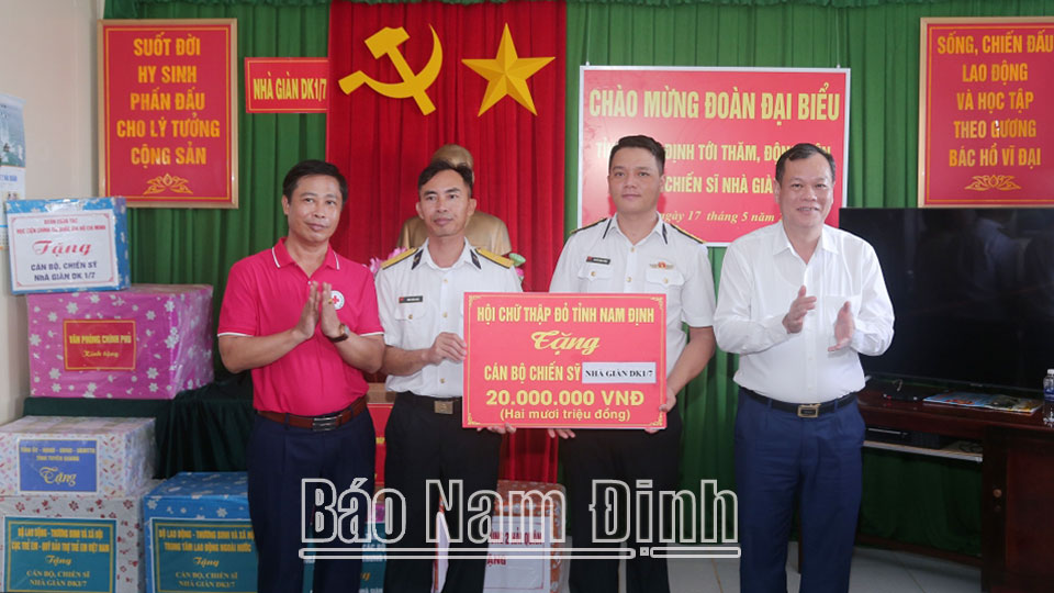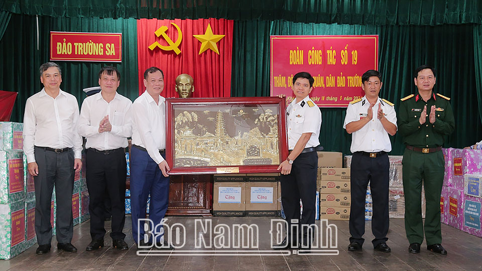 Nhân dịp này, đoàn công tác của các địa phương, đơn vị đã trao tặng nhiều phần quà ý nghĩa bằng tiền, vật tư, đồ dùng sinh hoạt,... tới quân và dân trên đảo. Trong đó, Tỉnh ủy, HĐND, UBND tỉnh Nam Định tặng 2 bức tranh tháp Phổ Minh bằng đồng, hàng trăm lá cờ Tổ quốc, 62 thùng nhu yếu phẩm trị giá 186 triệu đồng và 885 triệu đồng cho cán bộ, chiến sĩ các đơn vị và nhân dân trên đảo; 123 triệu đồng cho cán bộ, chiến sĩ là con em quê hương Nam Định đang sinh sống, công tác trên đảo và nhà giàn.