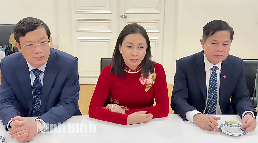 Nhấn mạnh mục đích chương trình xúc tiến đầu tư của Đoàn tại Pháp, đồng chí Phó Bí thư Thường trực Tỉnh ủy Đinh Thị Lụa cho biết: Với khát vọng phát triển bứt phá, tại Đại hội đại biểu Đảng bộ tỉnh Ninh Bình lần thứ I, nhiệm kỳ 2025-2030 đã xác định mục tiêu phấn đấu đến năm 2030, Ninh Bình trở thành thành phố trực thuộc Trung ương. Để góp phần sớm đạt mục tiêu đề ra, thời gian tới, tỉnh Ninh Bình mong muốn Đại sứ quán Việt Nam tại Pháp quan tâm hỗ trợ tỉnh trong các hoạt động tiếp xúc với các doanh nghiệp Pháp; tạo cầu nối giới thiệu các doanh nghiệp đến tìm hiểu, đầu tư tại tỉnh Ninh Bình trên các lĩnh vực mà tỉnh đang ưu tiên thu hút đầu tư.