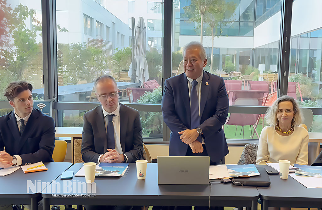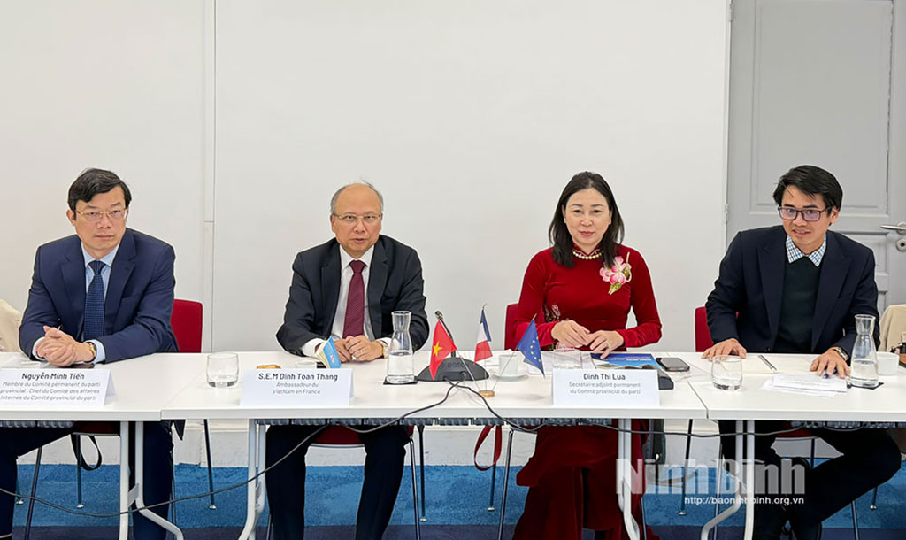 Đại sứ đặc mệnh toàn quyền Việt Nam tại Pháp Đinh Toàn Thắng vui mừng chào đón Đoàn công tác của tỉnh Ninh Bình đến thăm và làm việc. Chia sẻ tổng quát về mối quan hệ kinh tế, thương mại, đầu tư giữa Việt Nam và Pháp, Đại sứ đánh giá cao sự phát triển năng động của tỉnh Ninh Bình. Với lợi thế về vị trí địa lý, hạ tầng, nguồn nhân lực, Ninh Bình sau hợp nhất có không gian phát triển rộng mở với nhiều tiềm lực, là môi trường đầu tư thuận lợi, thu hút sự quan tâm của các nhà đầu tư trong và ngoài nước. Đánh giá cao sự chủ động, tích cực của lãnh đạo tỉnh Ninh Bình trong hoạt động xúc tiến đầu tư, thương mại nước ngoài, Đại sứ Đinh Toàn Thắng nhận định với các lĩnh vực thúc đẩy hợp tác đầu tư quốc tế mà các doanh nghiệp Pháp đang quan tâm, Ninh Bình có nhiều tiềm năng để thu hút như đầu tư vào các ngành nghề, lĩnh vực như: công nghiệp phụ trợ, nông nghiệp công nghệ cao, du lịch, y tế, giáo dục.
