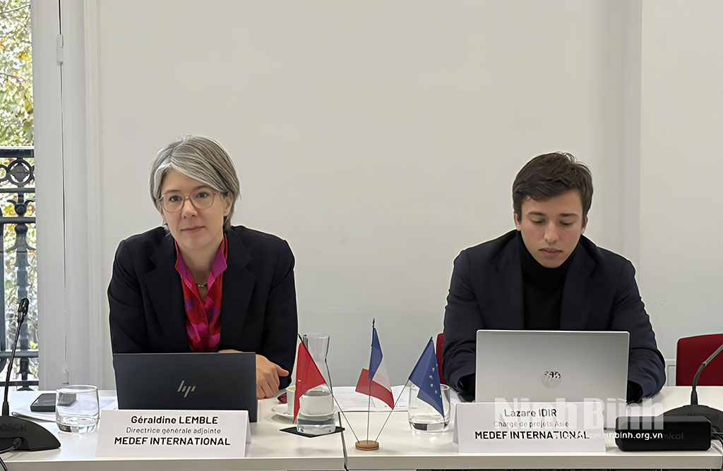 Thông tin tới Đoàn các hoạt động của Liên đoàn doanh nghiệp Pháp, bà Géraldine Lemblé cho biết: MEDEF là Liên đoàn lao động lớn nhất tại Pháp. Được thành lập năm 1998, hiện MEDEF có hơn 750.000 Công ty thành viên, 90 phần trăm trong số đó là các doanh nghiệp vừa và nhỏ (SME) có ít hơn 50 nhân viên. MEDEF tham gia vào hoạt động vận động hành lang ở cấp địa phương, khu vực, quốc gia và toàn EU.
