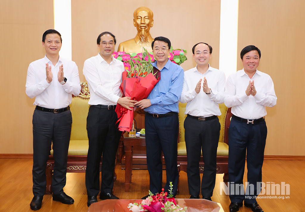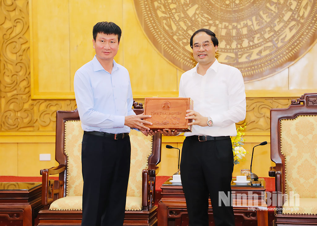 Nhân dịp này, đồng chí Bí thư Tỉnh ủy Thái Nguyên chúc mừng đồng chí Bí thư Tỉnh ủy Trần Huy Tuấn và đồng chí Phó Bí thư Tỉnh ủy Trần Đăng Quỳnh được Bộ Chính trị, Ban Bí thư tin tưởng, phân công nhiệm vụ mới; chúc Đảng bộ tỉnh Ninh Bình tiếp tục có những bước phát triển vững chắc trong thời gian tới.
