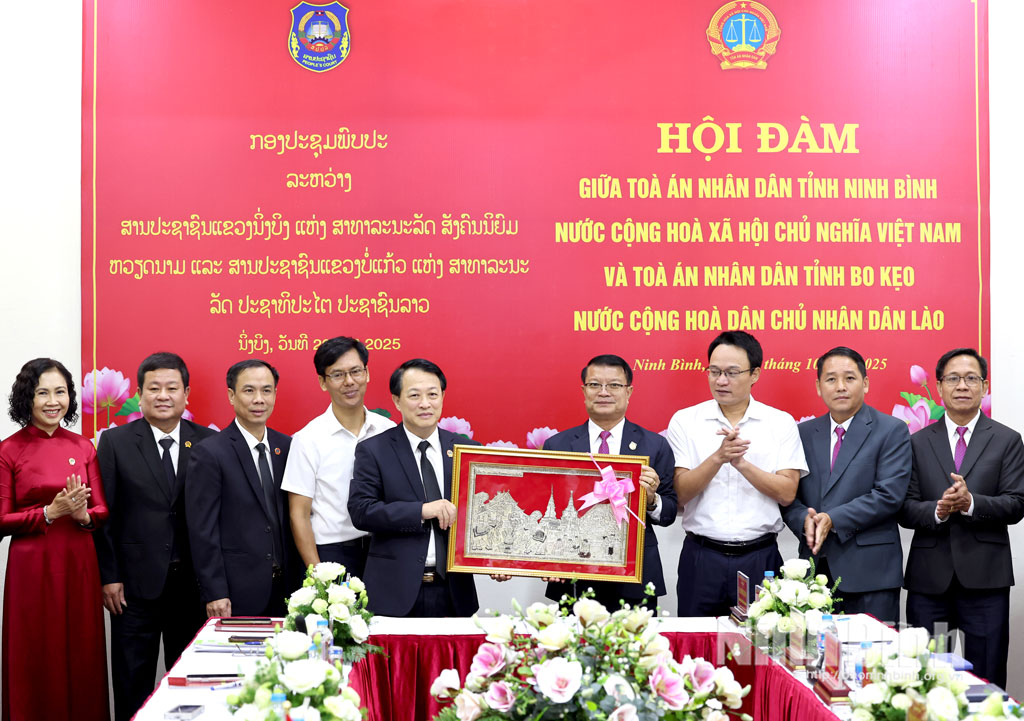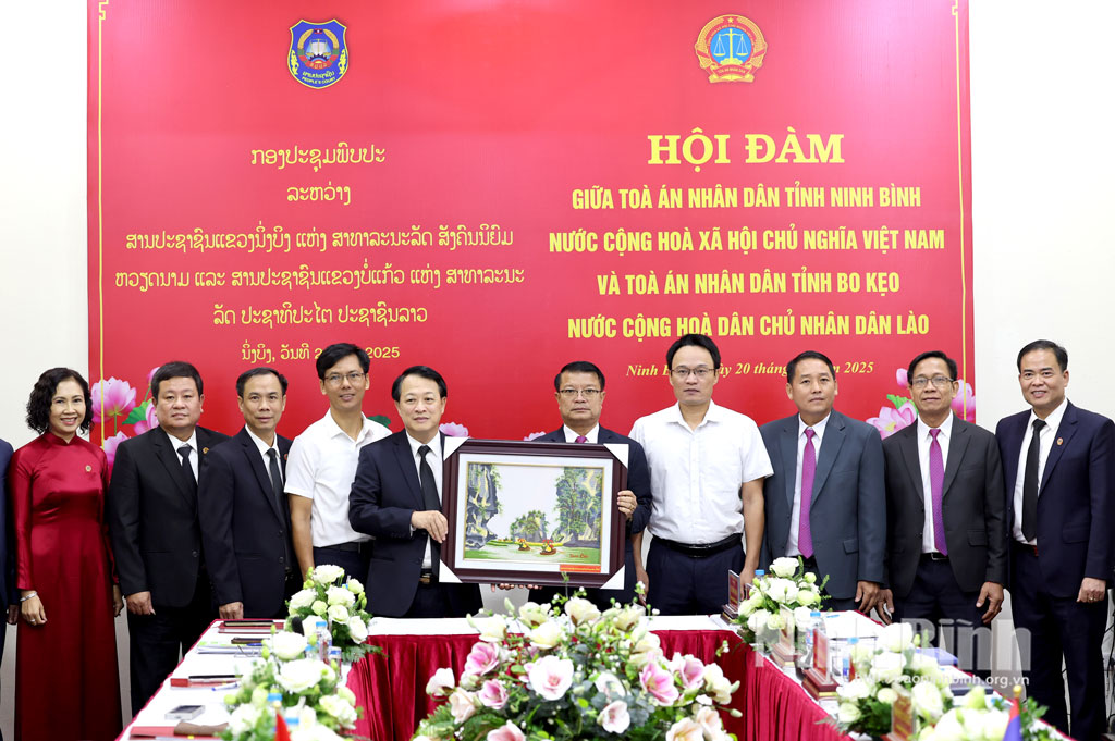 Nhân dịp này, TAND tỉnh Ninh Bình và TAND tỉnh Bo Kẹo đã ký kết biên bản hội đàm và chương trình hợp tác giữa TAND hai tỉnh trong thời gian tới.