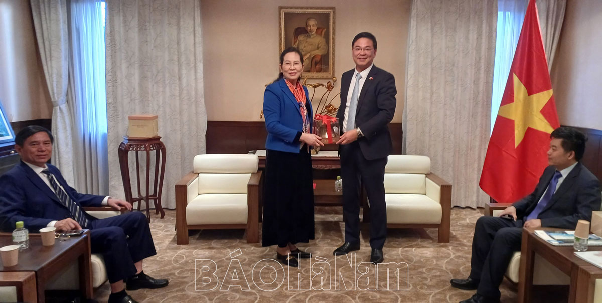 Tại buổi làm việc, đồng chí Bí thư Tỉnh ủy đã trao đổi với cán bộ, nhân viên Đại sứ quán Việt Nam tại Nhật Bản về tình hình phát triển kinh tế xã hội của tỉnh, công tác xúc tiến, thu hút đầu tư trong thời gian qua, đặc biệt là thu hút các nhà đầu tư đến từ Nhật Bản. Hiện, Hà Nam đã và đang đầu tư xây dựng 12 Khu công nghiệp (trong đó 8 Khu công nghiệp đã đi vào hoạt động), 14 Cụm công nghiệp với hạ tầng đồng bộ, hiện đại, bảo đảm đầy đủ dịch vụ điện, nước, y tế, ngân hàng, viễn thông, khách sạn, nhà hàng, sân Golf đáp ứng yêu cầu của các nhà đầu tư.