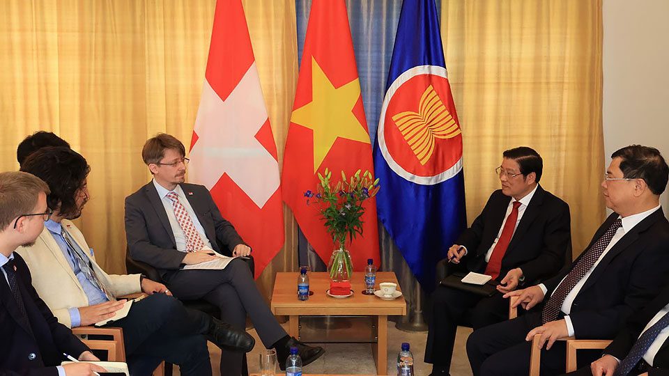 Đồng chí cảm ơn Chính phủ, nhân dân Thụy Sĩ và các đảng chính trị có quan hệ hợp tác với Đảng Cộng sản Việt Nam đã luôn dành sự ủng hộ cho sự nghiệp xây dựng và phát triển đất nước của Việt Nam. Để tiếp tục thúc đẩy quan hệ song phương Việt Nam - Thụy Sĩ trong thời gian tới, Đồng chí đề nghị hai bên tiếp tục duy trì các hoạt động trao đổi đoàn ở cấp cao và các cấp trên kênh đối ngoại đảng, ngoại giao nhà nước và đối ngoại nhân dân; sớm hoàn tất đàm phán Hiệp định thương mại tự do giữa Việt Nam và khối Mậu dịch tự do châu Âu (EFTA); triển khai có hiệu quả Chương trình hợp tác phát triển Việt Nam - Thụy Sĩ giai đoạn 2021-2024 và các hiệp định mà hai bên đã ký kết; tăng cường hợp tác trên các diễn đàn khu vực và quốc tế vì lợi ích của nhân dân hai nước, đóng góp vào hòa bình, ổn định và phát triển của khu vực và trên thế giới.