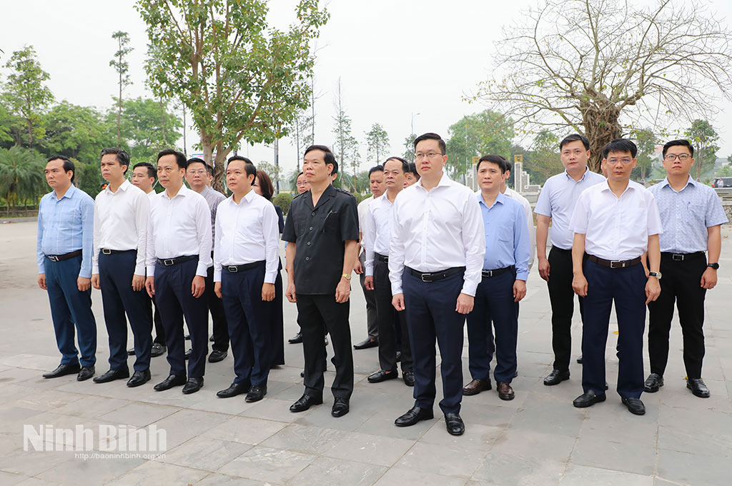 Các đồng chí: Phạm Quang Ngọc, Ủy viên Trung ương Đảng, Bí thư Tỉnh ủy Hưng Yên; Trần Đăng Quỳnh, Ủy viên Dự khuyết Trung ương Đảng, Phó Bí thư Tỉnh ủy Ninh Bình; Triệu Tài Vinh, Phó Trưởng Ban Tuyên giáo và Dân vận Trung ương cùng các đại biểu đặt vòng hoa, dâng hương tại Đài tưởng niệm liệt sĩ tỉnh Ninh Bình (phường Hoa Lư).