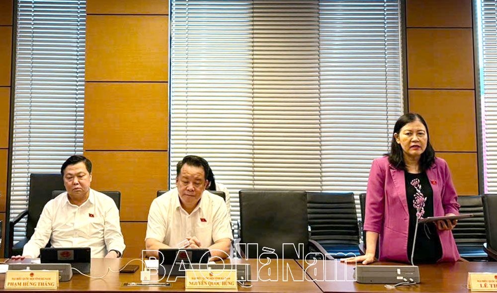Đồng chí Lê Thị Nga, Ủy viên Trung ương Đảng, Ủy viên Ủy ban Thường vụ Quốc hội, Phó Chủ nhiệm Thường trực Ủy ban Dân nguyện và Giám sát của Quốc hội, ĐBQH tỉnh Hà Nam phát biểu thảo luận.