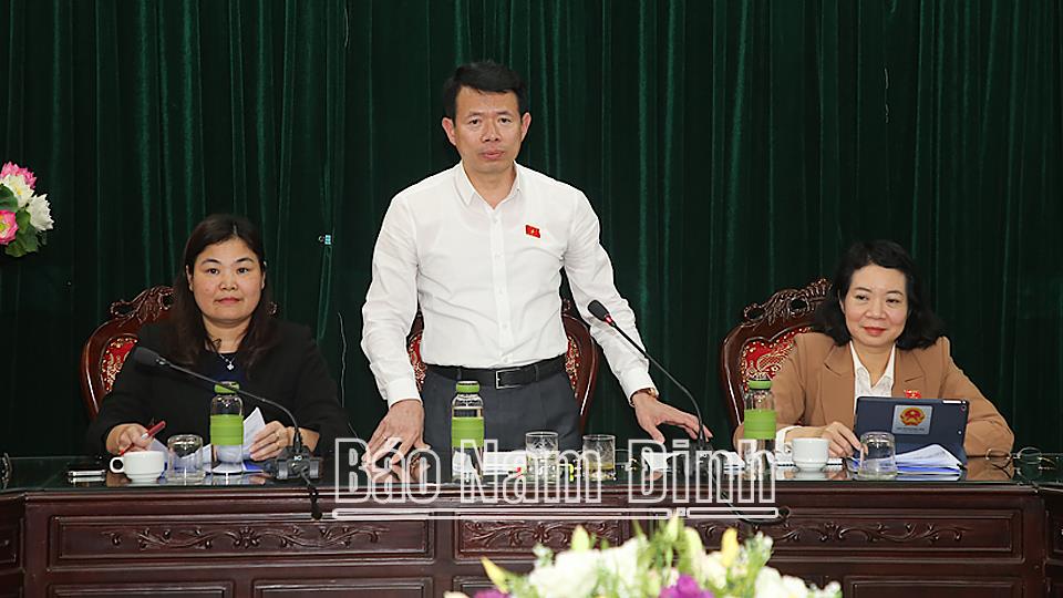 | Đồng chí Nguyễn Hải Dũng, TUV, Phó Trưởng đoàn chuyên trách Đoàn ĐBQH tỉnh phát biểu tại buổi giám sát. |