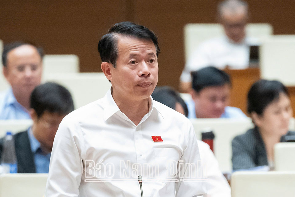 | Đồng chí Nguyễn Hải Dũng, TUV, Phó Trưởng đoàn chuyên trách Đoàn đại biểu Quốc hội tỉnh thảo luận về dự án Luật Công đoàn (sửa đổi). |