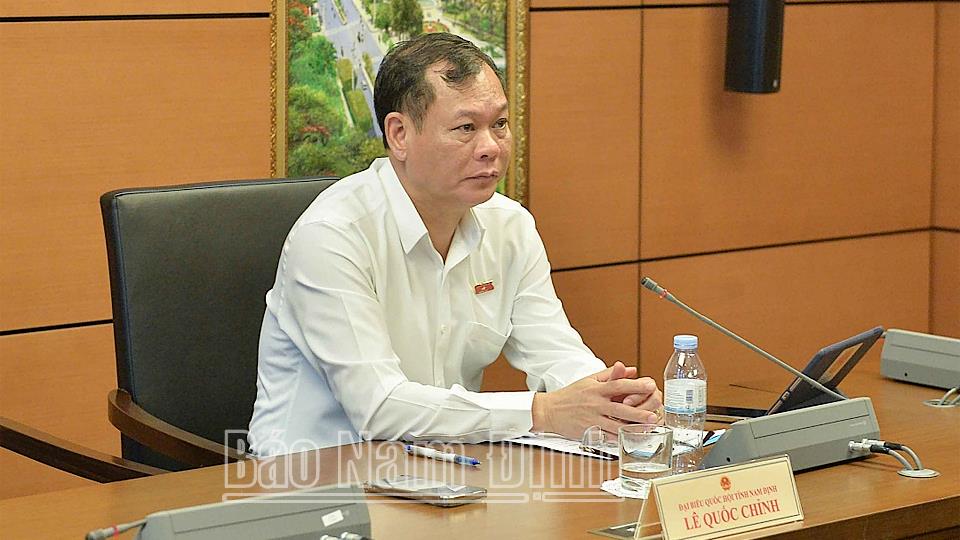 Ngày 8-6, Đoàn đại biểu Quốc hội (ĐBQH) tỉnh Nam Định thảo luận tại Tổ 19 cùng đoàn ĐBQH các tỉnh: Phú Thọ, Bình Dương. Đồng chí Lê Quốc Chỉnh, Phó Bí thư Thường trực Tỉnh ủy, Chủ tịch HĐND tỉnh, Trưởng đoàn Đoàn ĐBQH tỉnh Nam Định, Tổ trưởng điều hành phiên thảo luận.