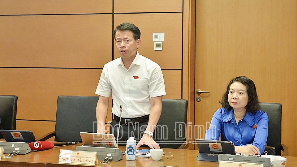 | Đồng chí Nguyễn Hải Dũng, TUV, Phó Trưởng đoàn chuyên trách Đoàn ĐBQH tỉnh phát biểu thảo luận. |