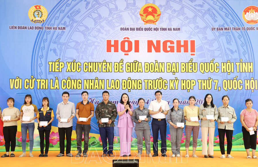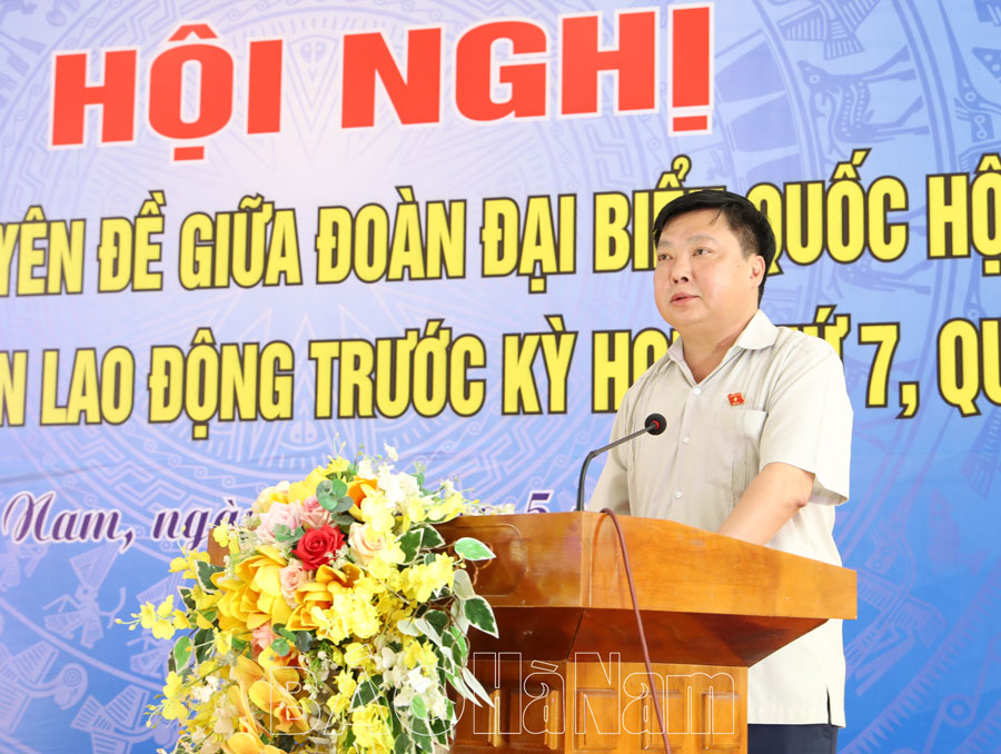 Sáng ngày 14/5, tại Trung tâm Văn hóa, Thể thao công nhân lao động (CNLĐ), Khu công nghiệp (KCN) Châu Sơn (thành phố Phủ Lý), Liên đoàn Lao động tỉnh, Đoàn đại biểu Quốc hội (ĐBQH) tỉnh và Ủy ban Mặt trận Tổ quốc tỉnh phối hợp tổ chức hội nghị tiếp xúc chuyên đề giữa Đoàn ĐBQH tỉnh với cử tri là CNLĐ trước Kỳ họp thứ 7, Quốc hội khóa XV.