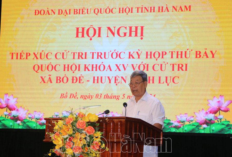 Chuẩn bị cho kỳ họp thứ 7 Quốc hội khóa XV, sáng ngày 3/5, Đoàn Đại biểu Quốc hội (ĐBQH) tỉnh tổ chức các tổ ĐBQH đi tiếp xúc cử tri tại một số địa phương trong tỉnh. Đồng chí Phạm Hùng Thắng, Tỉnh ủy viên, Phó Trưởng Đoàn ĐBQH tỉnh đã có buổi tiếp xúc với cử tri xã Bồ Đề (huyện Bình Lục). Cùng dự có đại diện Ủy ban MTTQ tỉnh, lãnh đạo một số sở, ban, ngành, đoàn thể của tỉnh cùng cấp ủy, chính quyền huyện Bình Lục và xã Bồ Đề.