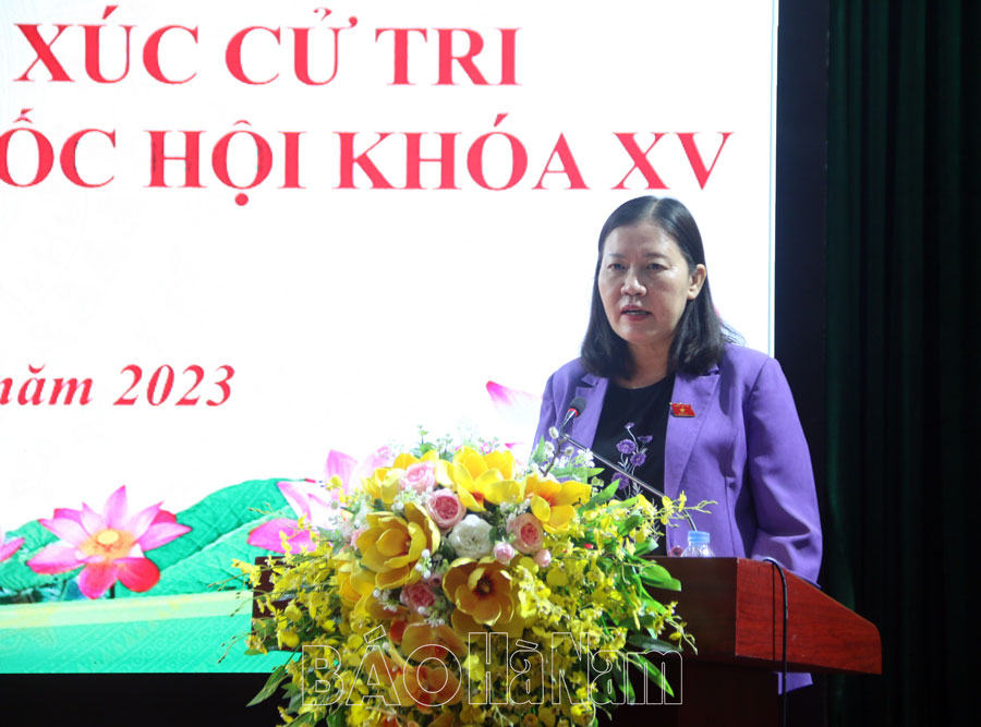 Phát biểu tại buổi tiếp xúc cử tri, đồng chí Lê Thị Nga, Ủy viên Trung ương Đảng, Ủy viên Ủy ban Thường vụ Quốc hội, Chủ nhiệm Ủy ban Tư pháp Quốc hội ghi nhận, tiếp thu, giải trình và thông tin một số nội dung, vấn đề cử tri quan tâm. Trên cơ sở ý kiến, kiến nghị của cử tri, Đoàn ĐBQH tỉnh tổng hợp đầy đủ báo cáo Ban Dân nguyện, Ủy ban Thường vụ Quốc hội để chuyển đến cơ quan có thẩm quyền xem xét, giải quyết, báo cáo trả lời cử tri và nhân dân trên địa bàn./.