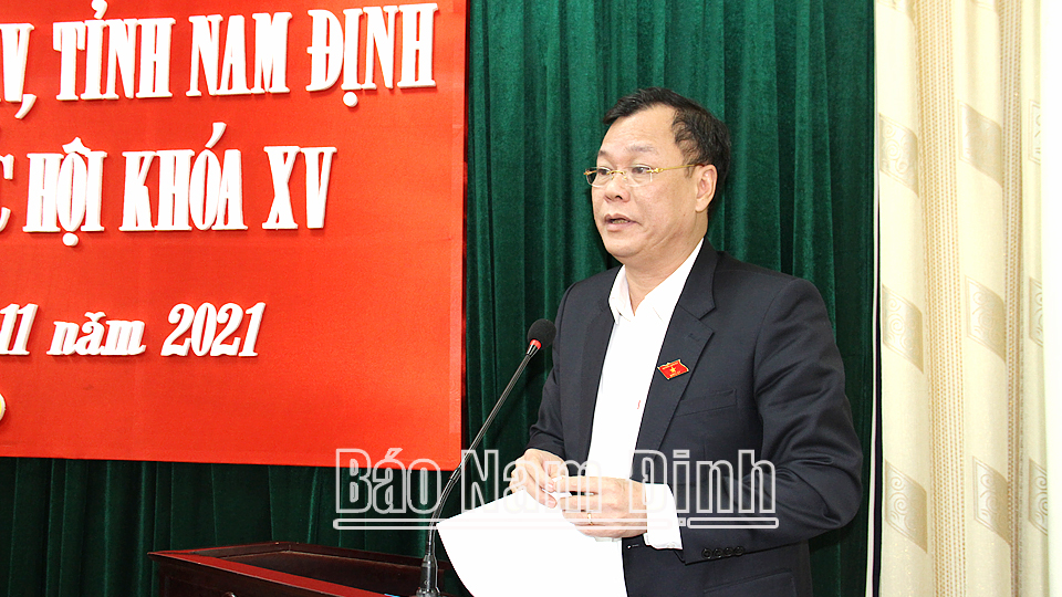 Phát biểu tại hội nghị, đồng chí Lê Quốc Chỉnh, Phó Bí thư Thường trực Tỉnh uỷ, Chủ tịch HĐND tỉnh, Trưởng đoàn Đoàn ĐBQH tỉnh thông tin với cử tri về kết quả thực hiện nhiệm vụ phát triển kinh tế - xã hội, công tác phòng, chống dịch COVID-19 của tỉnh trong thời gian qua. Năm 2021 mặc dù ảnh hưởng của tình hình dịch COVID-19, song kinh tế của tỉnh vẫn có sự khởi sắc. Tổng sản phẩm GRDP ước tăng từ 7,7 đến 8,2%. Một số lĩnh vực duy trì mức độ tăng trưởng khá so cùng kỳ và cao hơn bình quân chung cả nước. Đến nay đã có 78 xã, thị trấn hoàn thành chương trình xây dựng NTM nâng cao. Các lĩnh vực văn hóa, xã hội tiếp tục ổn định và phát triển. An ninh chính trị, trật tự an toàn xã hội được giữ vững. Trước tình hình dịch COVID-19 trên địa bàn tỉnh đang diễn biến hết sức phức tạp, cả hệ thống chính trị của tỉnh đang tập trung các biện pháp phòng, chống dịch quyết liệt để bảo vệ sức khỏe, tính mạng, đời sống nhân dân, vừa bảo đảm yêu cầu phát triển kinh tế - xã hội; nâng cao khả năng thích ứng trên mọi lĩnh vực của đời sống xã hội trong trạng thái bình thường mới. Tiếp tục thực hiện hiệu quả các nhiệm vụ chính trị của tỉnh, đồng chí Phó Bí thư Thường trực Tỉnh ủy Lê Quốc Chỉnh đề nghị các cấp, các ngành trong tỉnh tiếp tục tập trung lãnh đạo, chỉ đạo thực hiện mục tiêu kép vừa phát triển kinh tế - xã hội, vừa phòng chống dịch bệnh hiệu quả, khắc phục khó khăn, phát huy những kết quả đạt được trong năm 2021 để xây dựng kế hoạch phát triển kinh tế - xã hội năm 2022. Đồng chí trân trọng ghi nhận, tiếp thu và đánh giá cao những ý kiến phát biểu của cử tri; đồng thời đề nghị UBND tỉnh chỉ đạo các cơ quan, đơn vị, địa phương liên quan giải quyết các nội dung kiến nghị của cử tri thuộc thẩm quyền, báo cáo kết quả bằng văn bản để cử tri được biết. Đối với những ý kiến kiến nghị với Trung ương, Văn phòng Đoàn ĐBQH và HĐND tỉnh và Ban Thường trực Ủy ban MTTQ Việt Nam tỉnh tổng hợp, phân loại gửi đến các cơ quan chức năng xem xét, giải quyết theo quy định./.