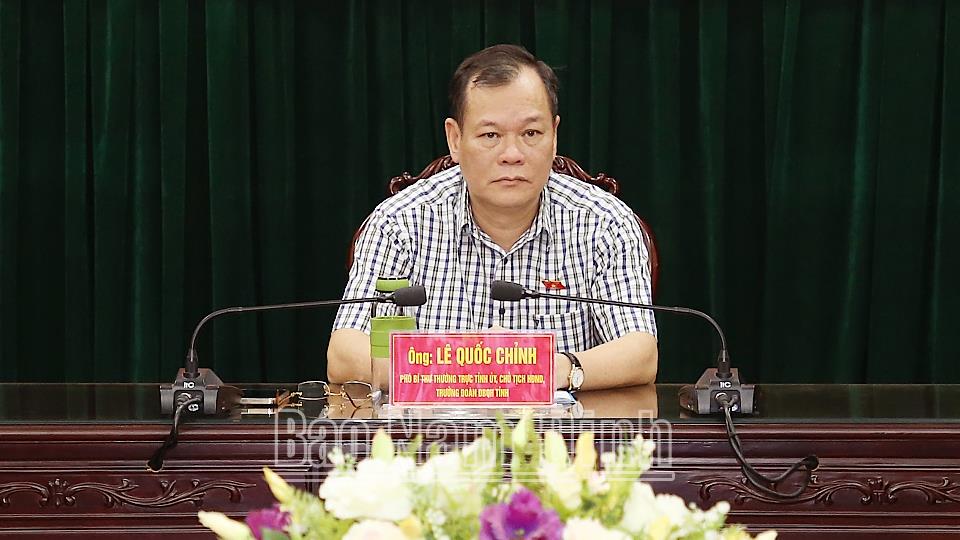| Đồng chí Lê Quốc Chỉnh, Phó Bí thư Thường trực Tỉnh uỷ, Chủ tịch HĐND tỉnh, Trưởng đoàn Đoàn ĐBQH tỉnh chủ trì hội nghị. |