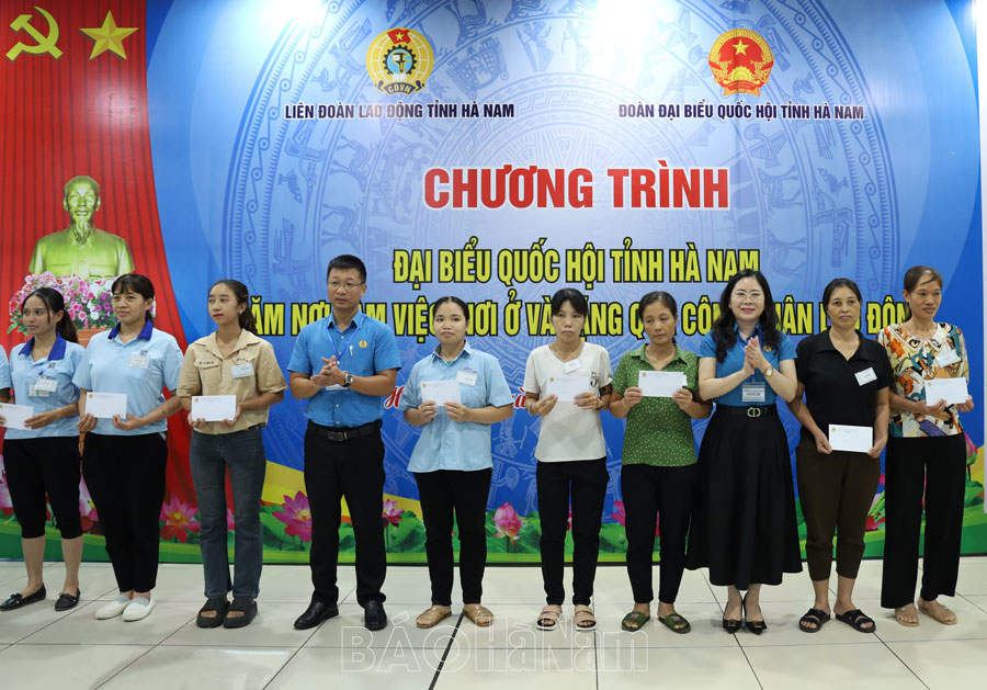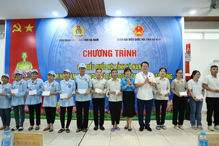 Trong khuôn khổ chương trình, Đoàn ĐBQH tỉnh, LĐLĐ tỉnh đã đi tham quan xưởng sản xuất và động viên công nhân lao động của Công ty Minebea Accesssolutions Việt Nam; thăm hỏi đời sống, việc làm và tặng 30 suất quà cho công nhân lao động tại khu nhà trọ của ông Lê Văn Tiến, Tổ dân phố Thần Nữ, phường Bạch Thượng.