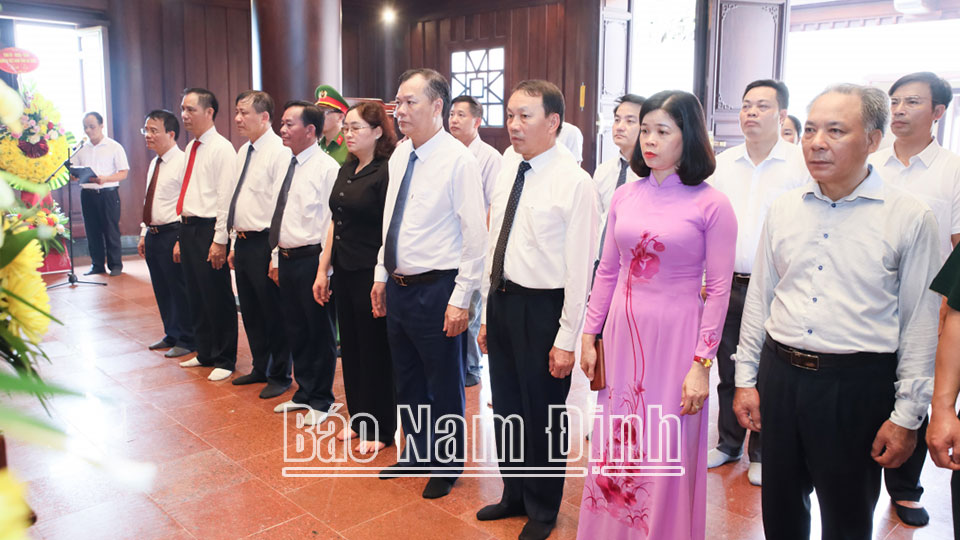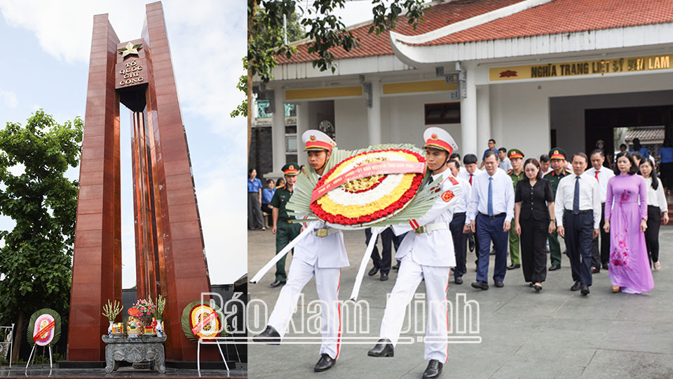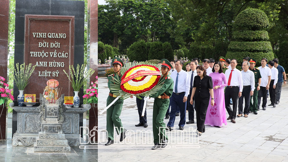 Trong không khí trang nghiêm thành kính, Đoàn đại biểu tỉnh Nam Định đã dâng vòng hoa và dành phút mặc niệm tưởng nhớ công ơn các Anh hùng Liệt sĩ, đồng thời kính cẩn thắp hương tại các phần mộ liệt sĩ.